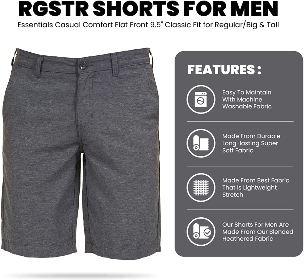 4 Pack Hybrid Shorts for Men Casual Dress Classic Golf Flat Front Essential Stretch Summer Men's 9.5 Inch Inseam