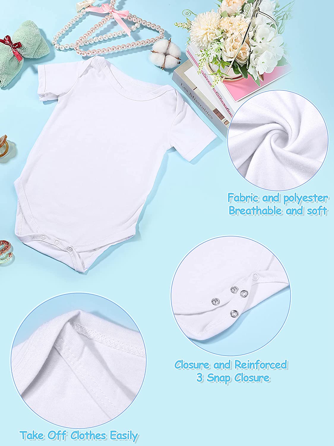 The blanks of baby bodysuit shirts allow you to sublimate or paint colorful patterns, words, logos, etc. It's a nice gift for your baby or friend who has a baby.
