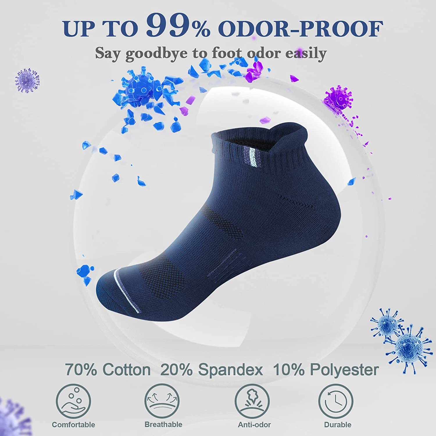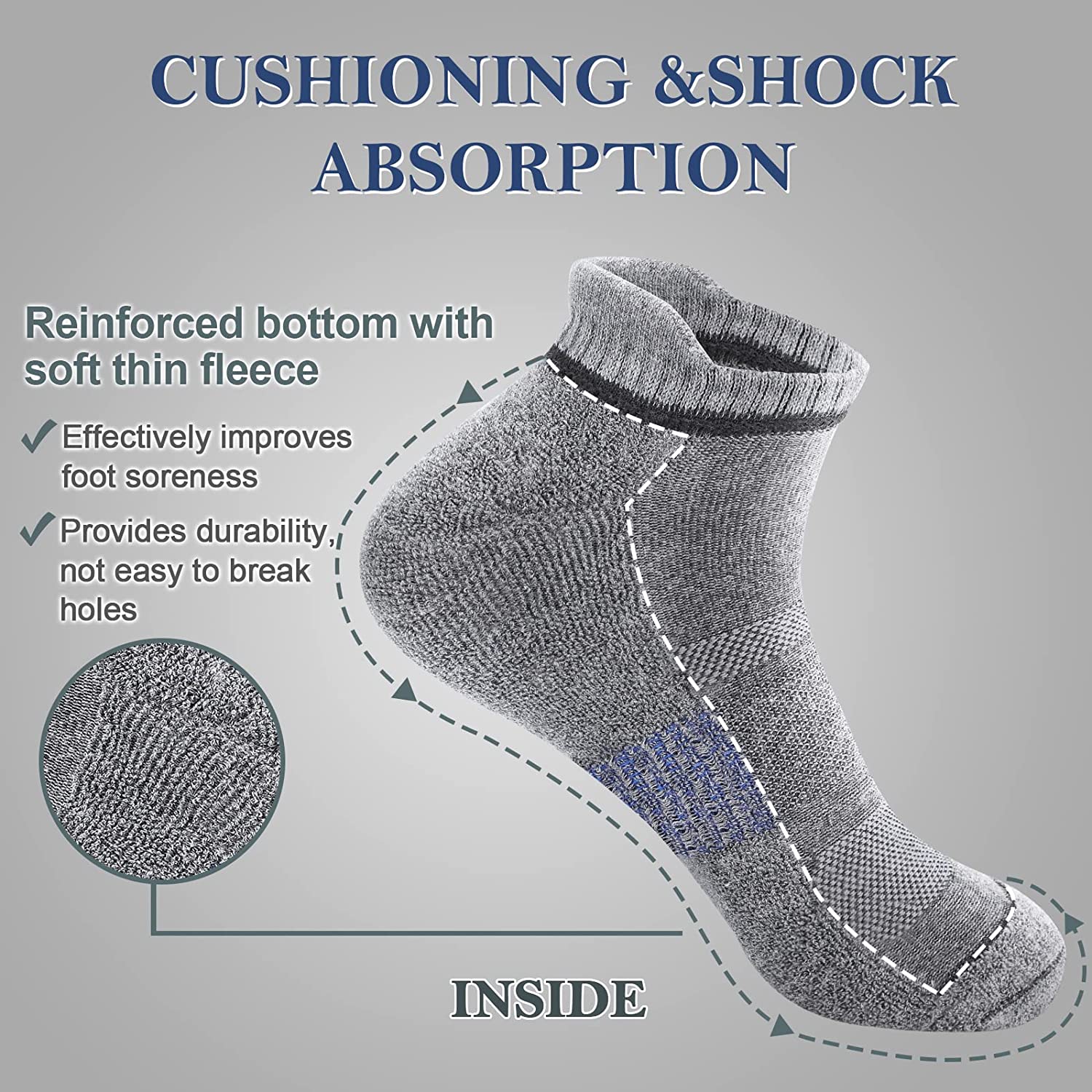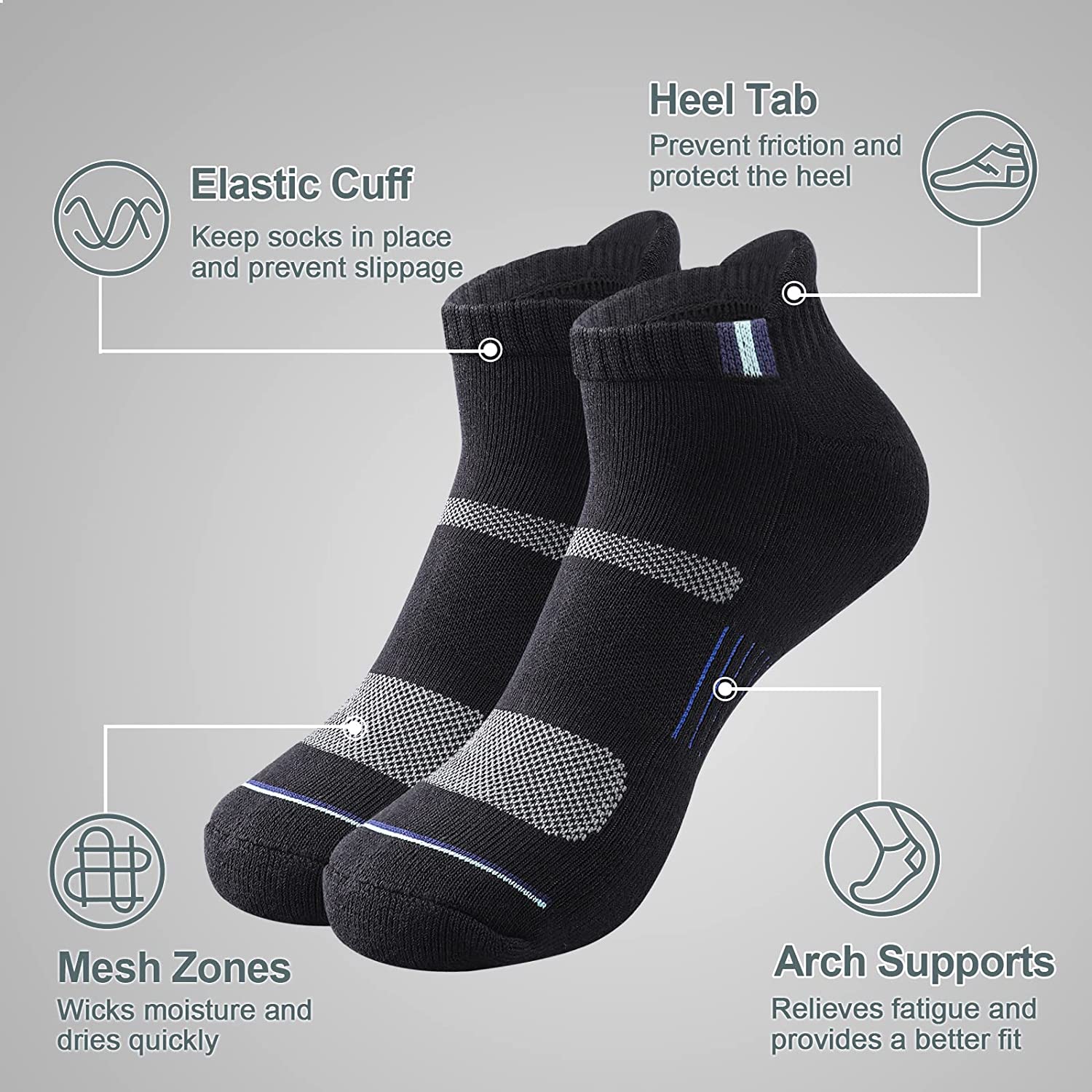 6 Pack Ankle Socks for Men - Athletic Cushioned Low Cut Tab Breathable Socks With Arch Support for Running Hiking Cycling (One size fits 6-11)