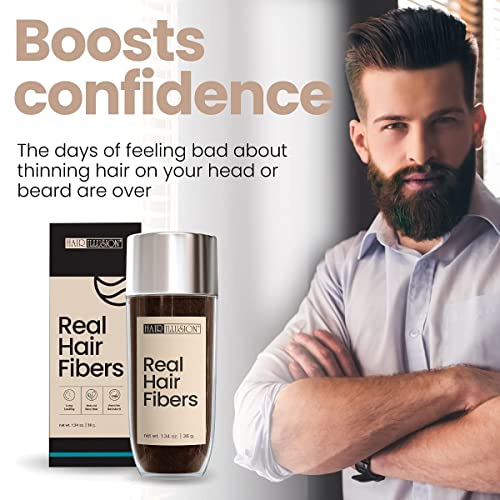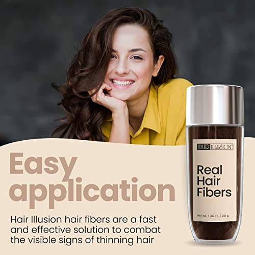 HAIR ILLUSION - 100% Natural Human Hair Fibers *Not Synthetic* For Men & Women, Premium Hair Building Formulation, Large 38g Bottle (brown)