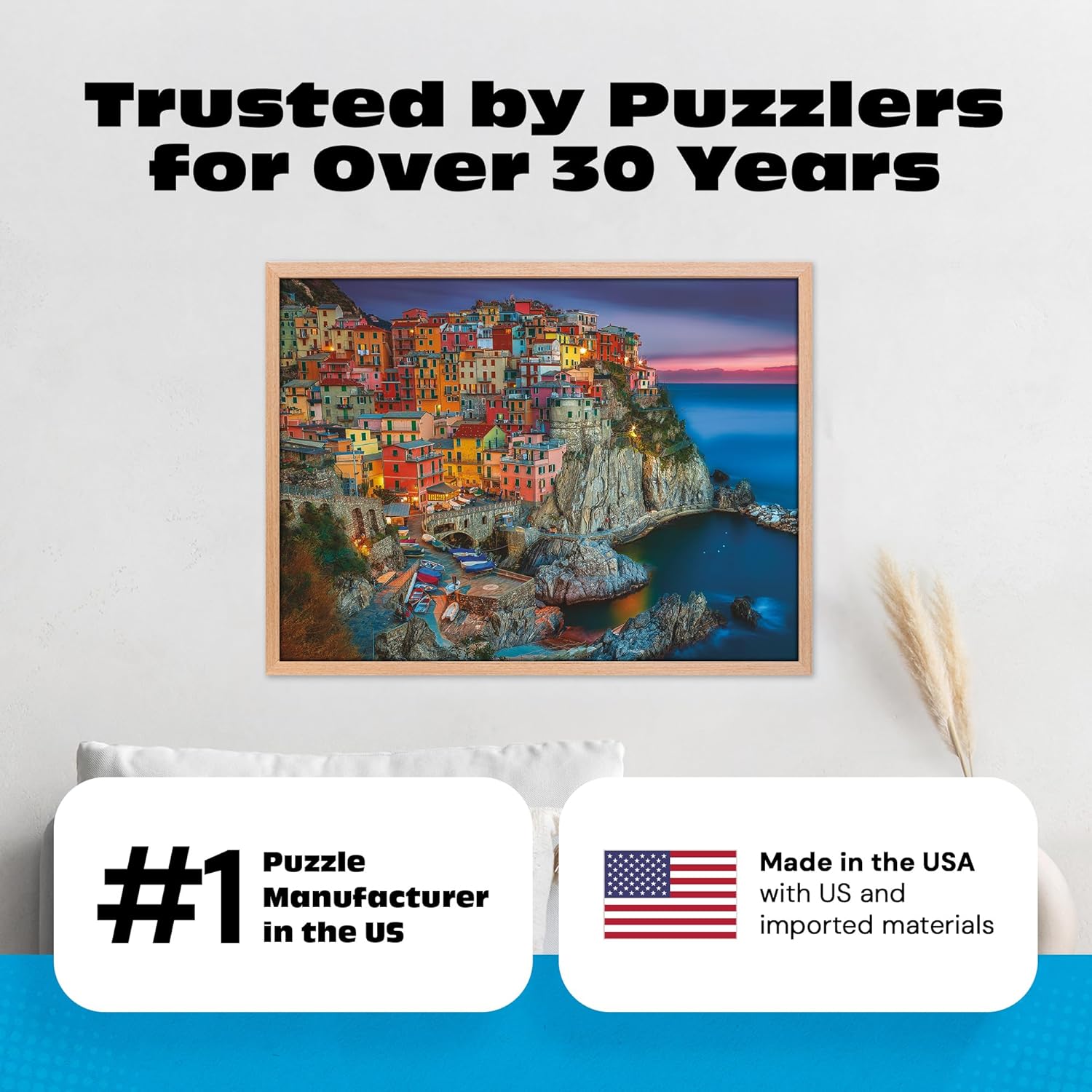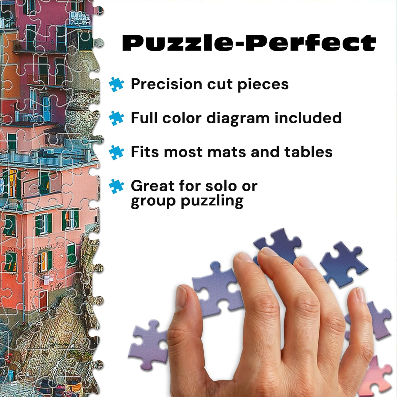 Experience the magic of Italy’s coastline with this Buffalo Games Cinque Terre – Peter Stewart 1000-Piece Jigsaw Puzzle. This premium puzzle features a stunning view of brightly colored cliffside homes set against the Mediterranean Sea, creating an image that is both challenging and rewarding to complete. Designed for adults and teens ages 14+, this puzzle suits a wide range of skill levels—from beginners who love a beautiful challenge to experienced puzzlers searching for a rich, immersive scene. The included full-size reference poster helps guide assembly as colors and shapes come together. Made with recycled materials and a premium puzzle board, each piece fits cleanly and securely for a smooth building experience. With a completed size of 26.75 x 19.75 inches, this artwork is perfect for framing, displaying, or enjoying again and again. Compared to standard jigsaw puzzles, Buffalo Games puzzles offer thicker board, precisely cut pieces, and vibrant printing. Whether you’re enjoying a relaxing solo evening, looking for a cozy family activity, or hosting a creative date night, this puzzle delivers connection and mindfulness. Proudly manufactured in the USA, it reflects the quality and care Buffalo Games brings to every product.