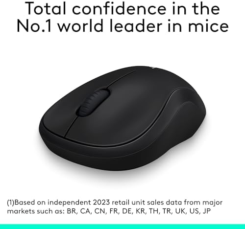 Logitech M185 Wireless Mouse, 2.4GHz with USB Mini Receiver, 12-Month Battery Life, 1000 DPI Optical Tracking, Ambidextrous, Compatible with PC, Mac, Laptop - Black