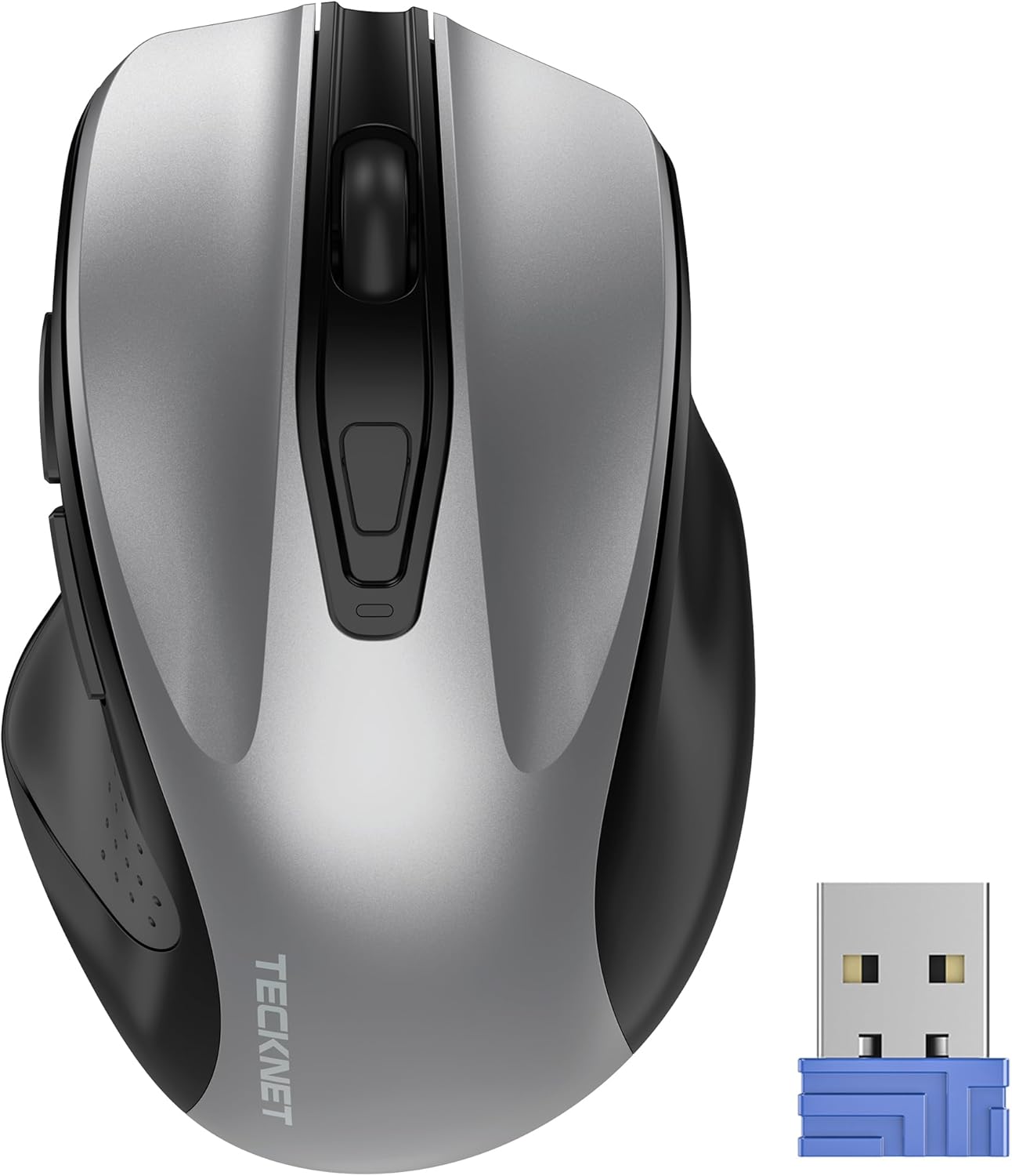 TECKNET Wireless Mouse, 2.4G Ergonomic Optical Mouse, Computer Mouse for Laptop, PC, Computer, Chromebook, Notebook, 6 Buttons, 24 Months Battery Life, 2600 DPI, 5 Adjustment Levels - Purple