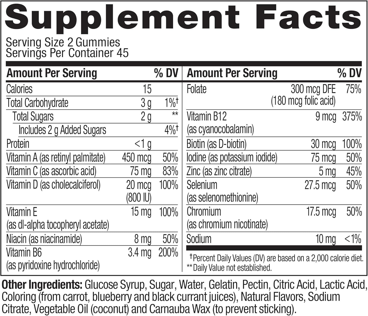 Zinc. These chewable daily vitamins include the nutrients your body needs. B vitamins support your body's cellular energy production to power your day. Antioxidants like Vitamins A, C, and E help fight free radicals and promote a healthy heart.* Now that's a vitamin ready to flex. *These statements have not been evaluated by the Food and Drug Administration. This product is not intended to diagnose, treat, cure or prevent any disease.