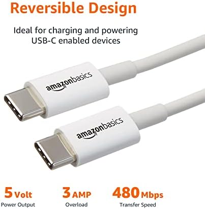 USB-IF Certified, connects any USB-C enabled devices. For power transfer/charging smartphones, power banks, wall/car chargers, and low-power devices. Suitable for data transfer between smartphones, tablets, laptops, hard drives and more In the box: 1 cable, 6 foot 15W USB-C 2.0 cable for charging and powering devices, transfering data, photos, and music Fast Charge and Data Transfer: Supports fast charging up to 15W (5V/3A) and data transfer speeds up to 480 Mbps. Do not exceed recommended load (15W, 5V/3A). Limited charging speed for PD enabled devices Backed by an Amazon Basics 1-Year Limited Warranty