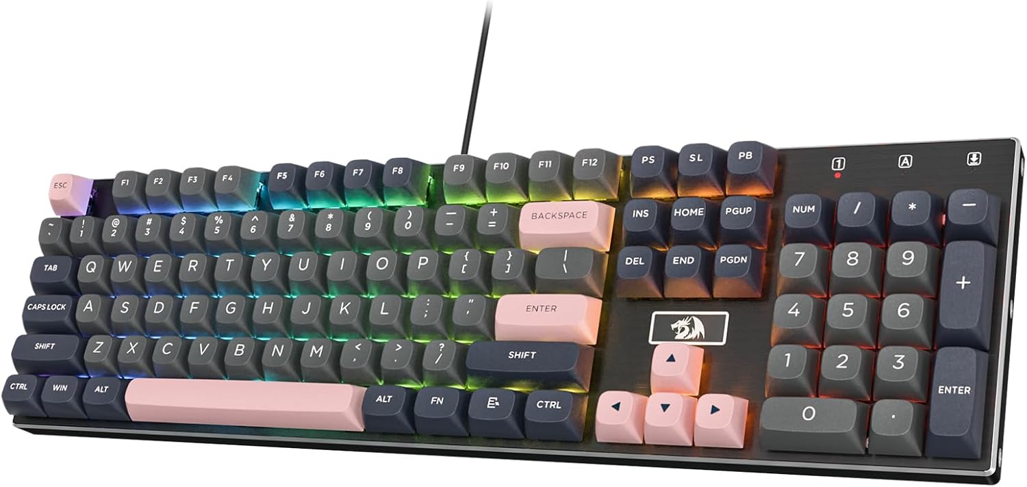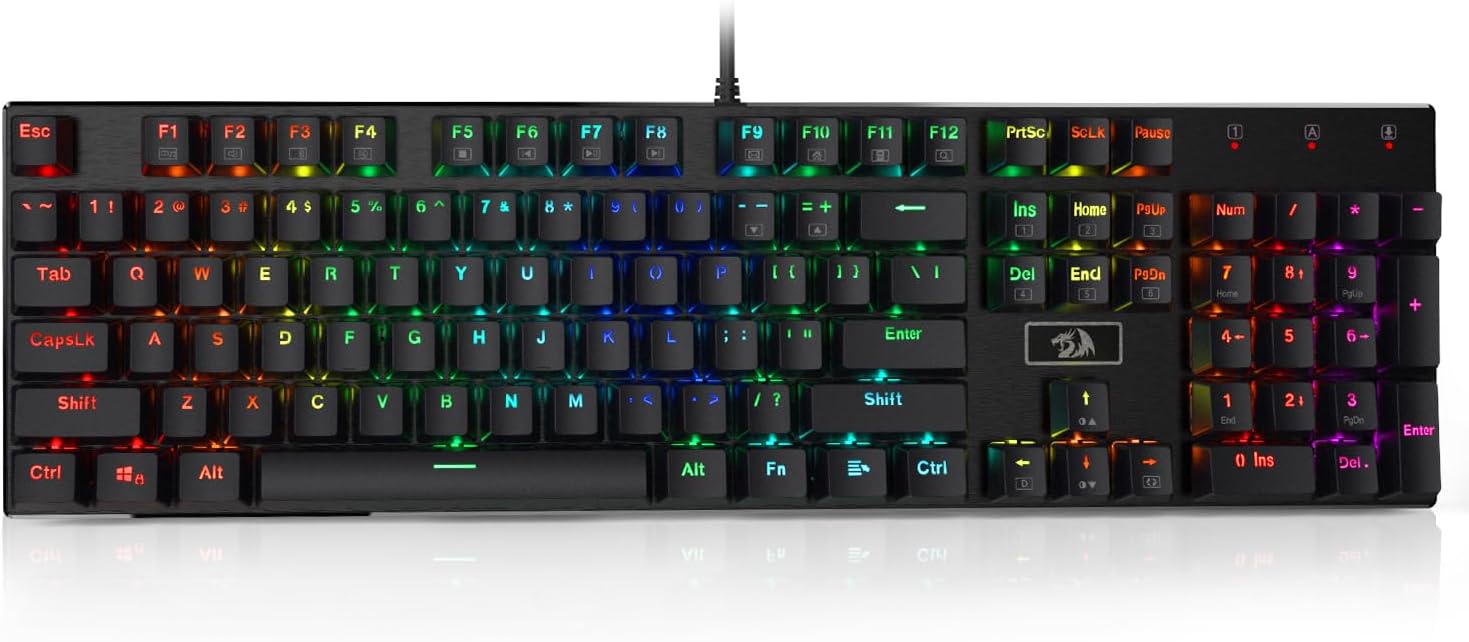 Redragon K556 RGB LED Backlit Wired Mechanical Gaming Keyboard, 104 Keys Hot-Swap Mechanical Keyboard w\/Aluminum Base, Upgraded Socket and Noise Absorbing Foams, Soft Tactile Brown Switch