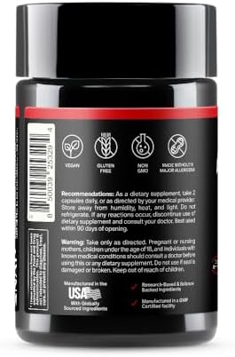 Snap Supplements Nitric Oxide Supplement with L-Arginine to Support Energy, Quick Recovery, Heart Health, Muscle Growth & Circulation, 60 Vegetarian Capsules (1 Month Supply)