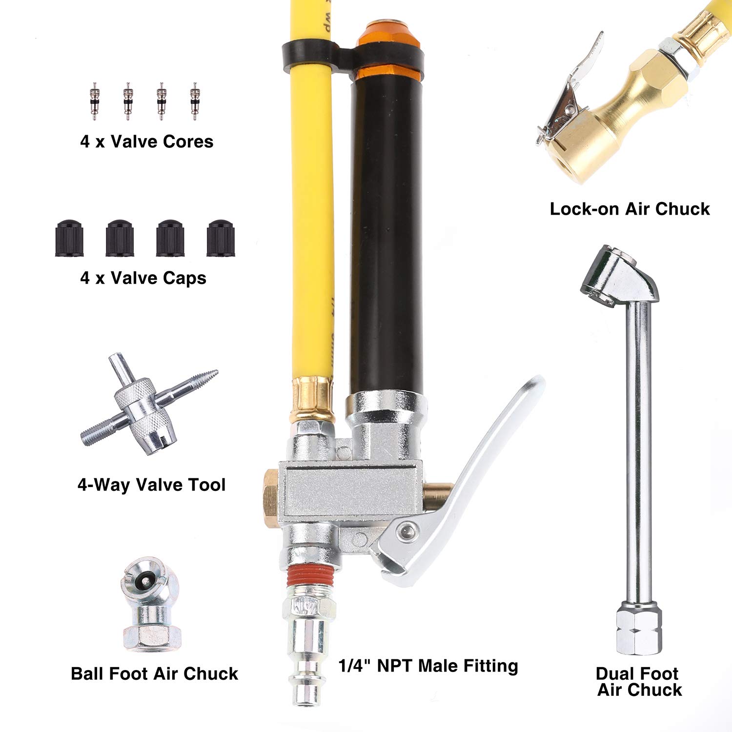 Hromee Heavy Duty Tire Inflator with Pressure Gauge 120PSI with Dual Head Air Chuck and Lock On Tire Chuck, Air Compressor Accessory and Tire Valve Tools
