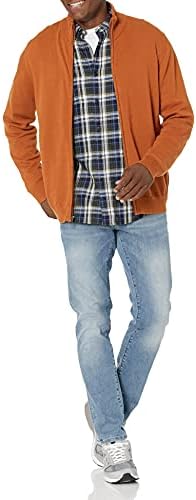 REGULAR FIT: This full zip mens sweatshirt has an easy fit through the shoulders, chest, and waist 100% COTTON: Our full-zip cotton sweatshirt for men is made from 100% cotton yarn VERSATILE STYLE: This men's sweatshirt can be worn unzipped with jeans for a casual look or paired with chinos for a more formal look COMFORTABLE DETAILS: This men's sweater features a ribbed funnel neck, bottom hem, and sleeve cuffs, plus a center front zipper closure MACHINE WASHABLE: Our cotton full-zip sweater for men is machine washable in cold water. Lay it flat to dry