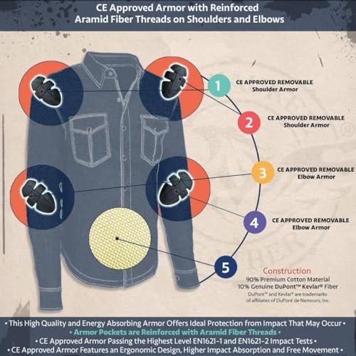 Milwaukee Leather MPM1633 Men's Plaid Flannel Biker Shirt with CE Approved Armor - Reinforced w/Aramid Fiber - X-Large Multi