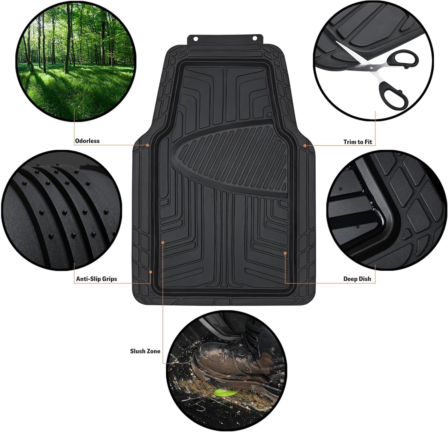 Amazon Basics 4-Piece Premium All-Season Anti-Slip Rubber Floor Mats, All Weather Protection for Cars, SUVs and Trucks, Universal Trim to Fit, Black