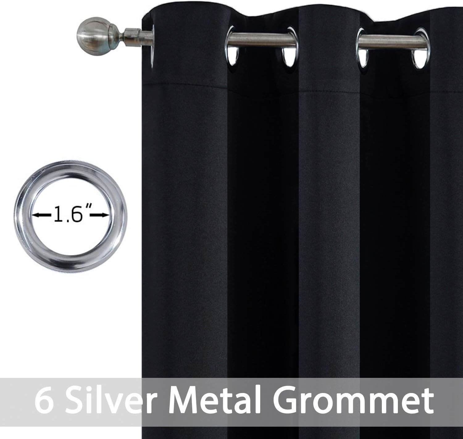 Yakamok Black Room Darkening Grommet Window Drapes Blackout Curtains Thermal Insulated Grommet Curtain Panels for Bedroom, 38W x 84L,One Pair