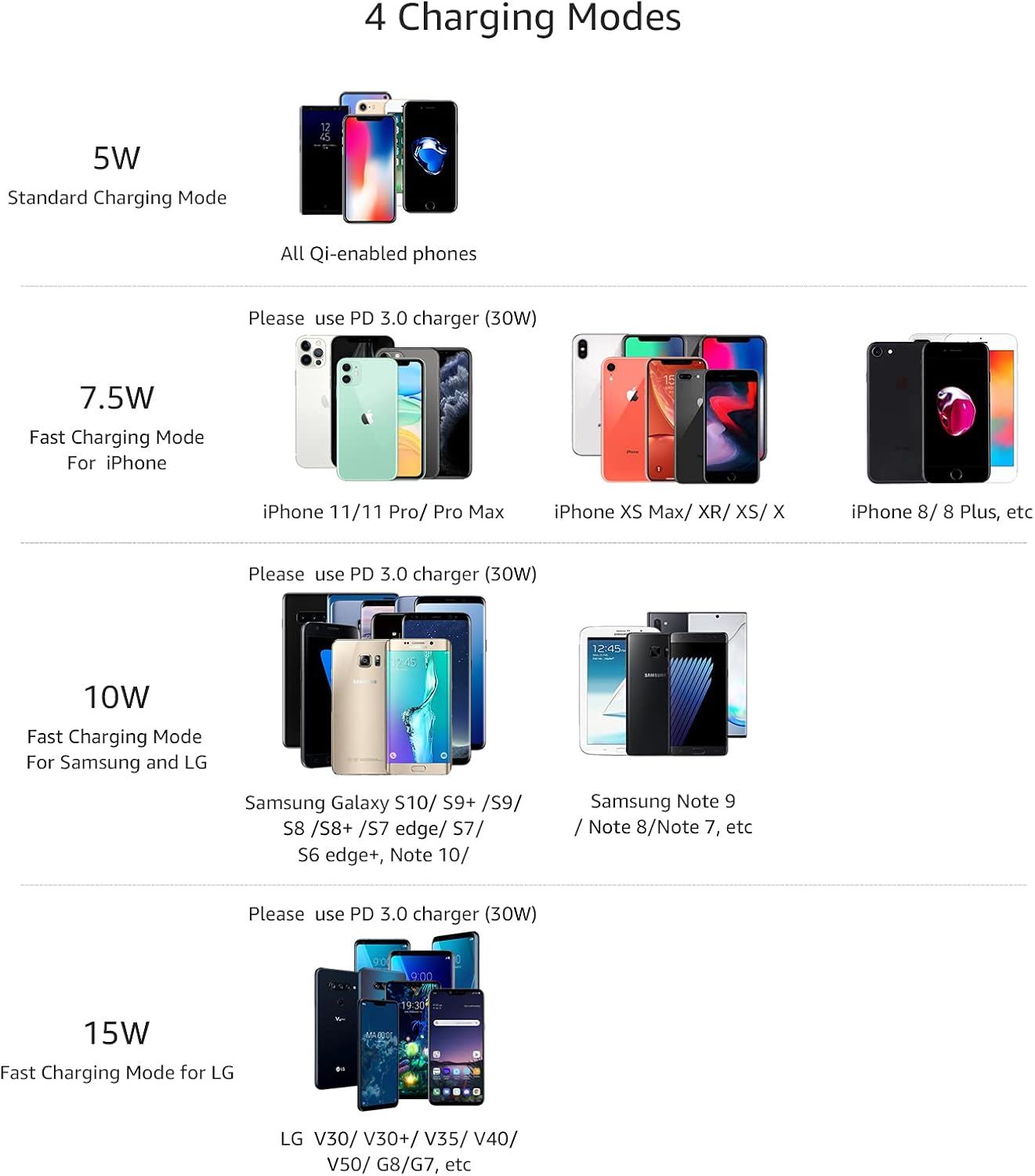 HIGH-SPEED DYNAMIC CHARGING: Enjoy fast and efficient charging with optimized chipsets that deliver 15W for LG, 10W for Samsung, and 7.5W for iPhones using compatible 15W wireless chargers