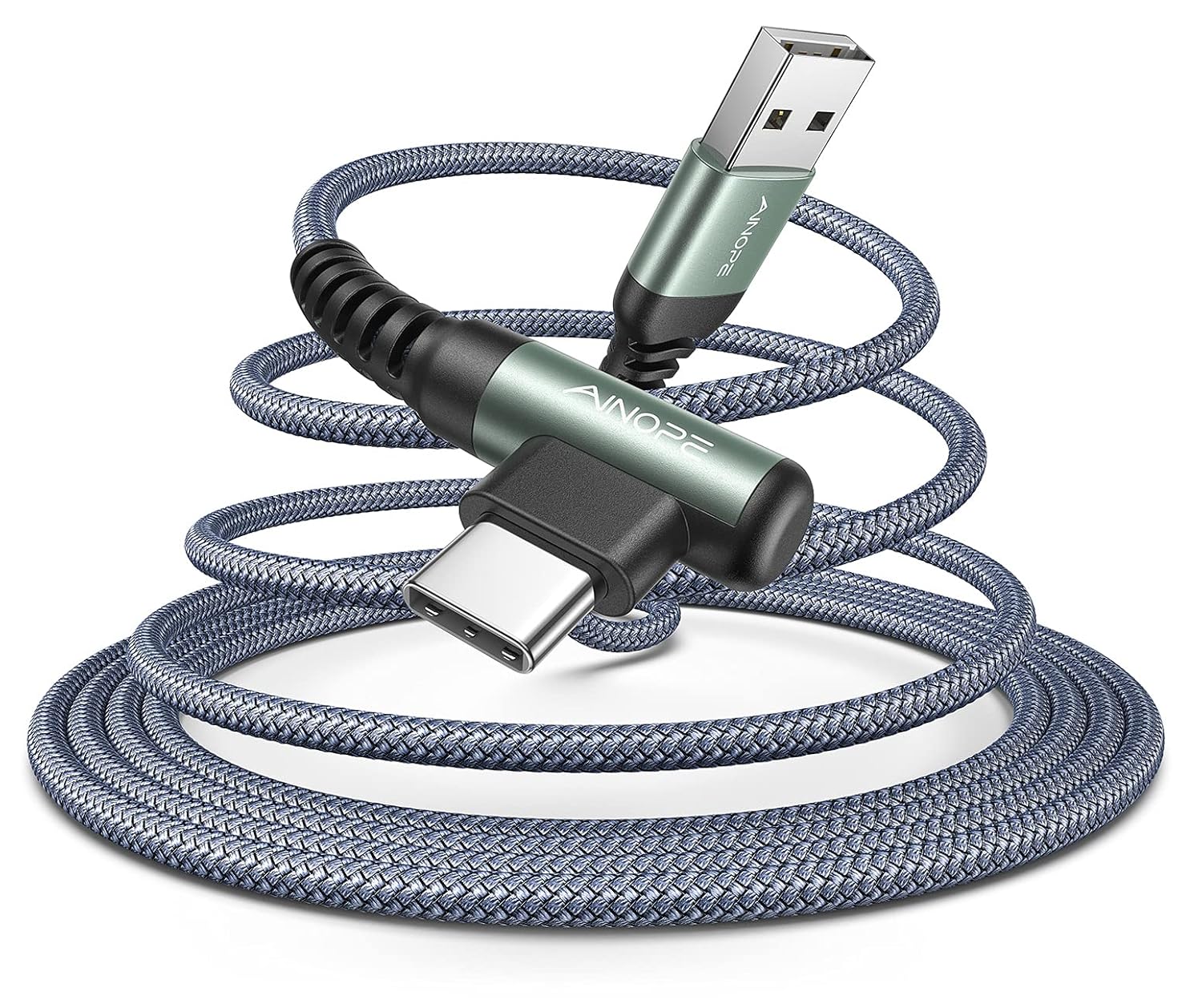 AINOPE USB to USB C Cable [2-Pack, 6.6ft] 3.1A Type C Charger Fast Charging, Right Angle USB C Cable for iPhone 17 Carplay Cable, Galaxy S10+ S10 S9, Note 10 9, LG V30, Moto, iPhone 16 15 Charger Cord