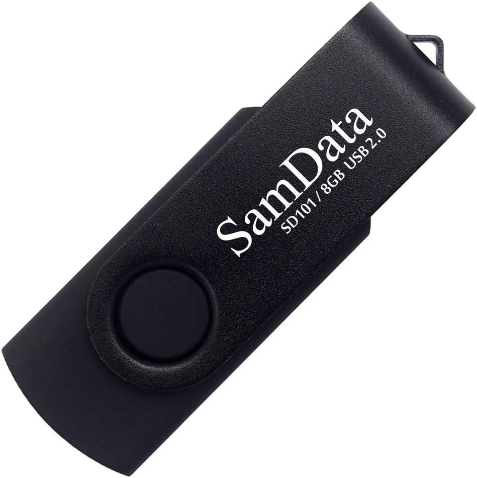• SamData USB Flash Drive 8GB USB 2.0 Thumb Drive Swivel Memory Stick Brand: SamData Storage Memory: 8GB Interface: High speed USB 2.0 Working Temperature: -30~70C Support Windows 2000 / XP / Vista / win 7, Mac 9.0 or above Support PC Mode: all brands of PC, Laptop, etc. Easy to read and read in high speed ,No need drive/power supply only plug in. Small style and fashionable products, as an impressive gift for your beloved, friends or even customers. Package Content: 1 Pack 8GB USB 2.0 Flash Drive Available in black. Please Note: 1. 1GB = 1024MB. Some capacity not available for data storage. 2: Some of the listed capacity on a Flash storage device is used for formatting and other functions and thus is not available for data storage. As such, the actual available capacity for data storage is less than what is listed on the products. 3: FAT32 is factory default drive format, which is read/write compatible with Windows and Mac OS