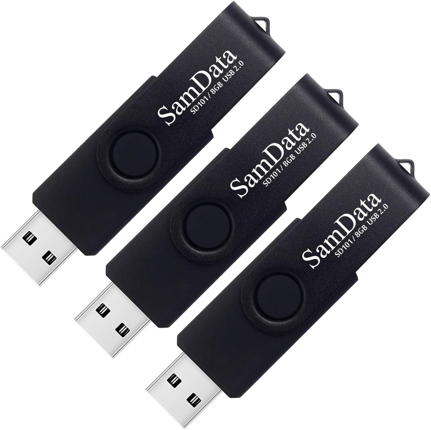 SamData USB Flash Drive 8GB 1 Pack USB 2.0 Thumb Drive Swivel Memory Stick Data Storage Jump Drive Zip Drive Drive with Led Indicator (Black, 8GB-1Pack)