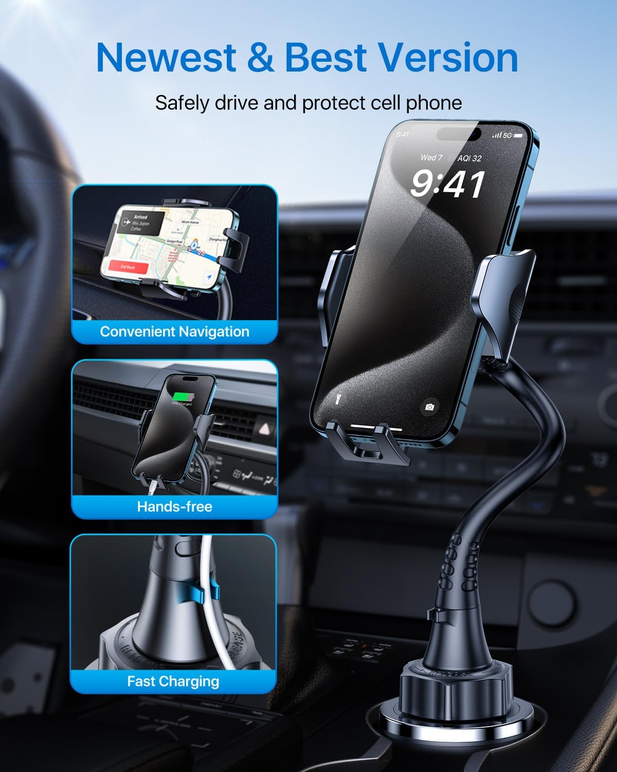 andobil Upgraded 15" Cup Holder Phone Holder, 【Solidest & Adjustable】 Military-Grade Long Gooseneck Cup Phone Holders for Your Car Truck, Car Phone Holder for iPhone 17 Pro Max 16 15 14\/Samsu