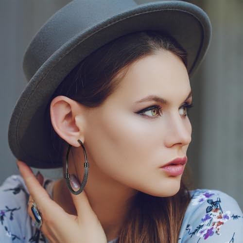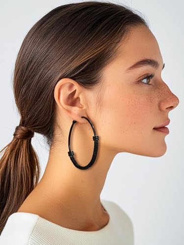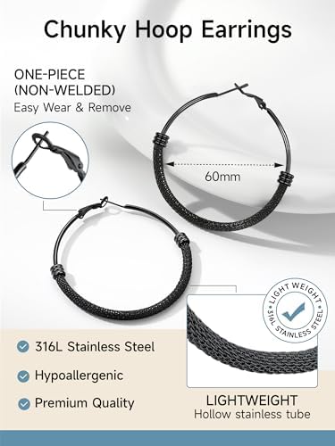 Material: 316L Stainless Steel with Black Gun Plated, Solid, Highly Resisted to Rust or Tarnish. Hypoallergenic, Suitable for Sensitive Skin. Size: 60mm*60mm, weight: 13.8g/pair, these chunky Hoop Earrings are everything your wardrobe needs now. An easy, classic accessory that will pair endlessly with your favorite styles. Always On Trend. These simple thick hoops will liven up your clothes without detracting from its simplicity. Not Seasonal. Simple but Elegant. Easy Match. Beautiful hoop earrings that can be worn with anything. Great for everyday wearing. The hoop earrings will come with box and black velvet pouch.