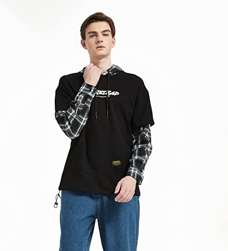 Cotton 55% ,Polyester 45% soft and warm Hip hop style, please check the size charter carefully Pull On closure Special Patchwork design print hoodies Wash Care: Machine Wash Cold With Like Colors,Tumble Dry low if needed or lay flat to dry, use mild detergant,dry immediately,donot bleach