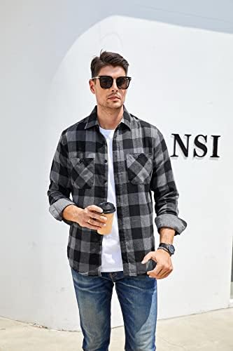 Material: Our flannel shirts for men are made from Cotton/Poly blend material,Good capability of tenderness,This classic,versatile shirt provides a clean,buttoned-up look with a special wash for a soft feel and maximum comfort. Size: This men's flannel shirts are based on US regular fit sizing,fits to size,you can wear the shirts tucked or un-tucked in,a t-shirt inside if like,suitable for Autumn,Winter and Spring,easy to pair with chinos,jeans,pants. Style: Button down collar,timeless buffalo check and other traditional,fashion plaid design,two pockets with button,large enough and provide alot of utility. Occasions: The button down shirt style is great for daily life,work,weekend,outdoor.Casual dress shirt fitting creats flexible elegance. Easy to get compliments and great gift idea for father,brothers,husband and friends. Warm Tips: The black blue green red flannel shirts collection provides wide range choice,and save time to pick up shirts. Machine/hand washable,low iron if necessary. Kindly wash it before wearing and cut back on the tags.
