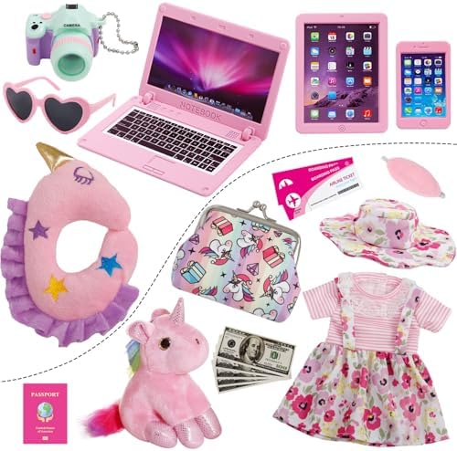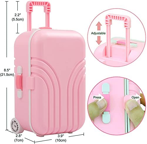 18 Inch Doll Suitcase Travel Luggage Play Accessories, Doll Clothes Accessories Carrier Storage Set, Case, Hat, Sunglasses, Camera, Pillow, Toy Pet