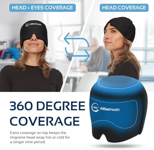 Headache and Migraine Relief - Finally, natural drug free relief for headaches and migraines that actually works! This migraine ice head wrap offers 360 degrees of coverage to completely envelop your head in an icy cocoon of coolness and compression. Cold Or Hot Therapy - Form-fitting gel migraine hat can be frozen for cold therapy or microwaved for heated therapy. Directly targets problematic areas like the temples, forehead, sides, back of the neck and eyes. Soft and comfortable with no unnecessary pressure. One size fits most – One-piece wrap design offers soothing positive compression to alleviate pounding headaches and debilitating migraine flare ups. The natural snug fit of the migraine hat allows you to relax without worrying about it sliding off. Freezes Fast, Stays Cold Longer - Medical grade inner gel material freezes in just an hour and stays cold longer than traditional ice packs. If you need longer continuous relief, be sure to purchase two or more so you'll always have one to use and one ready to go. Dark Light-Blocking Eye Cover - Includes a built-in eye ice pack section at the bottom of the migraine cap to target puffy eyes or cluster headaches localized behind the eye. Light-blocking design delivers blackout effects without needing to close the curtains.