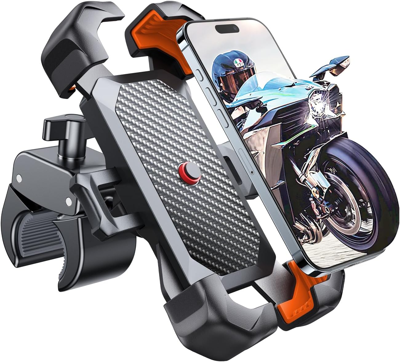 JOYROOM Motorcycle Phone Mount, [1s Auto Lock][100mph Military Anti-Shake] Bike Phone Holder for Bicycle, [10s Quick Install] Handlebar Phone Mount, Compatible with iPhone, Samsung, All Cell Phone