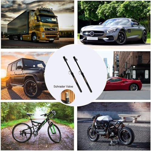 1. LONG ZINC ALLOY DUAL HEAD DESIGN : Straight foot air chuck are deisghed for inner wheels or difficult reached valve as well as the 30°reverse chuck are for outer wheels.A good choice for testing your tire pressure 2.ACCURATELY MEASURE THE TIRE PRESSURE:Two-side ABS bar calibrated:10-150 psi / 2 psi increment,Easy read printed clear scale .Perfect for truck, car, suv, rv, atv, bike or motorcycle with schrader valve 3.HEAVY DUTY WELL BULIT STRUCTURE:Zinc alloy chuck with solid brass core,stainless steel body,black powder coating with a hanging ring for easy storage.No battery needed, suitable for any severe environment 4.HOW TO USE: Push the chuck on the tire valve to get the air out of the tire, the scale bar will slip out and then you can get the pressure reading.Once finished the adjustment of the tire pressure, don't forget to screw on the valve caps 5.UNIVERSAL FIT CAR TRUCK Protect your vehicle, Extend useful life of tyre, Save your FUEL cost, Enhance your driving ability , Keep you and your family safe Get One For You And Your Family!