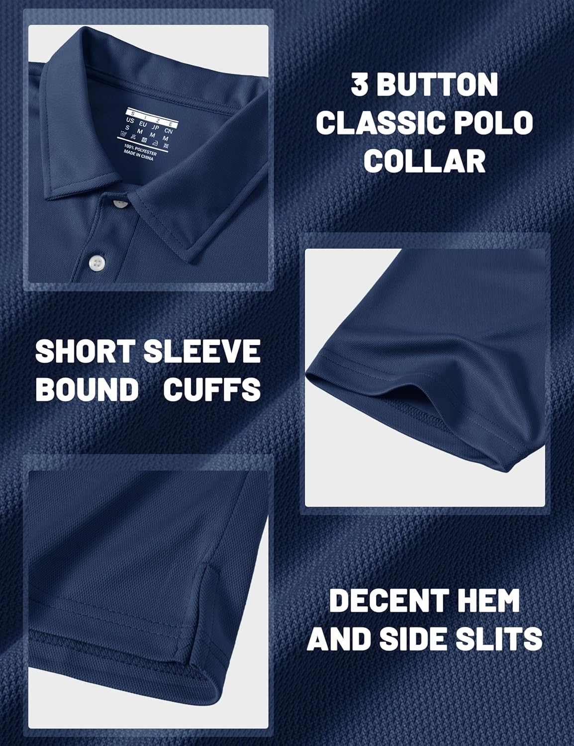 MAGCOMSEN Men's Polo Shirts 3 Buttons Casual Work T Shirts Quick Dry Short Sleeve Golf Shirt Pique Jersey Outdoor Performance