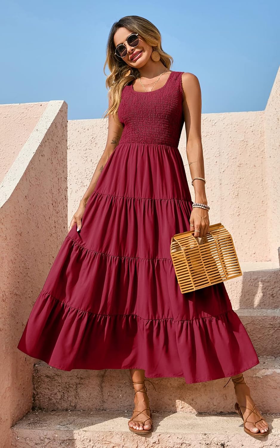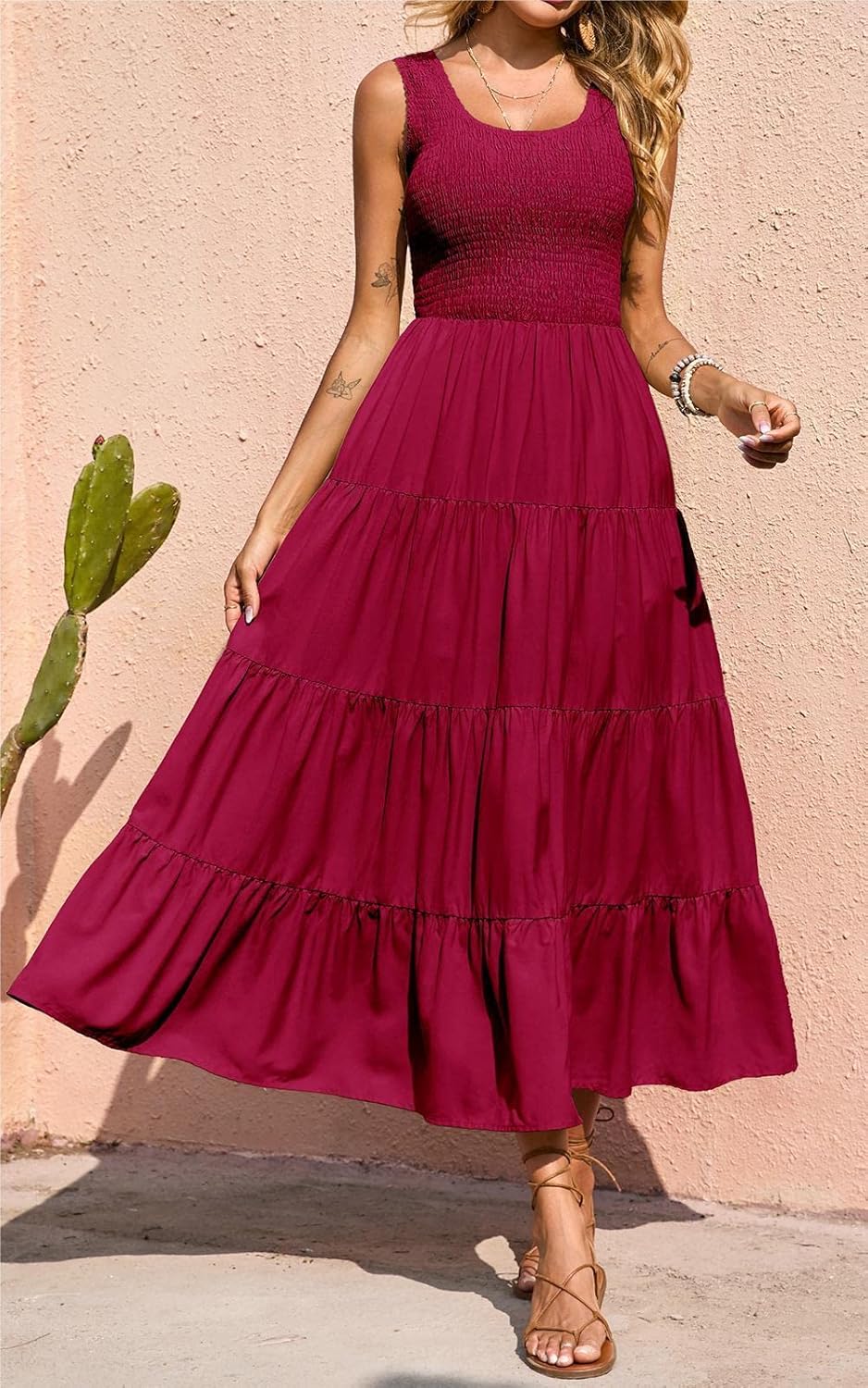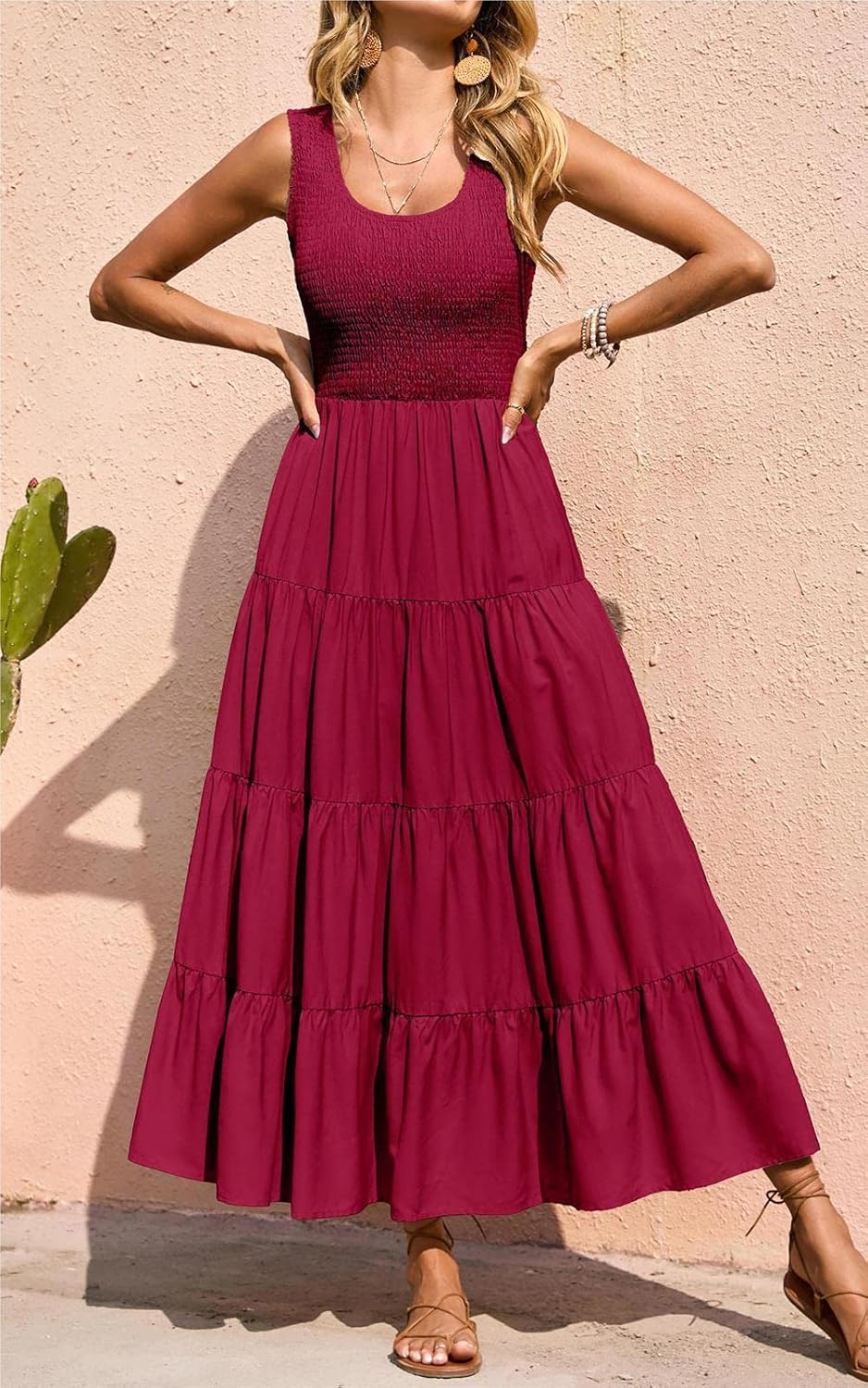 PRETTYGARDEN Women's 2026 Casual Loose Plain Maxi Sundress Smocked Tank Dress Sleeveless Spring Beach Tiered Long Dresses