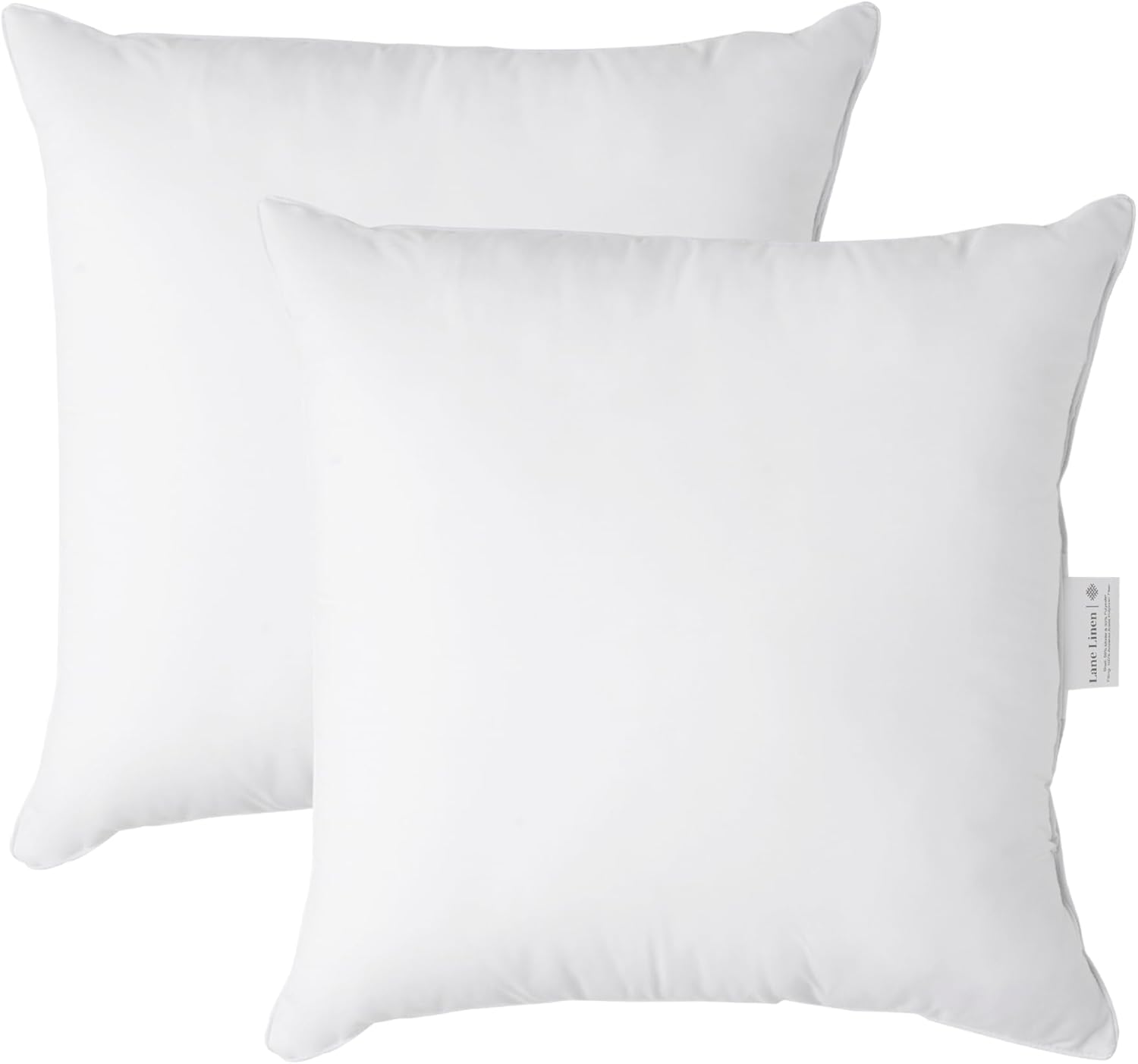 LANE LINEN 18 x 18 Throw Pillow Insert - Pack of 2 White, Down Alternative Pillow Inserts for Decorative Pillow Covers, Throw Pillows for Bed, Couch Pillows for Living Room