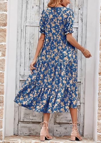 SIZE TIPS: S=US 4-6, M=US 8-10,L=US 12-14,XL=US 16-18 Summer Floral Print Dress Is A Woman's Romantic Dream, In Such A Nice Weather, You Should Wear It, The Printing Is Retro And Magnificent, And The Color Is Gorgeous And Elegant, Looks Very Lovely And Beautiful, Soft, Comfortable And Airy For Hot Summer And Humid Days, Just Trust Me, When You Wear This Dress You Will Attracting More Attention Material: Floral Print Midi Dress Is Made Of Very Soft Polyester/ Spandex Blend Fabric, The Fabric Is A Little Thicker Than Other Summer Wear. The Material Is Not Silk But Is Quality Fabric. Super Light Weight And Breathable, Stretches But Maintains Shape, Not See Through, Perfect For Summer And Other Seasons Features: Women’s Summer Dress, Floral Print, Bohemian Style, Midi Length, Vintage, Cute Puff Short Sleeve, Flowy Swing Hem, Crew Neck, Loose Fit, Vintage And Elegant Look, Ruffle Hemline, High Waist Perfectly Shows Your Good Body Figure, Polka Dot Printed, Flare A-Line Mini Dresses, Your Best Choice For Hot Summer Highlight: Bohemian Floral Print Dress Is Always Stylish And Classic, The High-Waisted A-Line Version Can Better Show Your Perfect Figure, The Round Neck Design Shows Your Slim Neckline, Retro Puff Sleeves French Style, Different Dresses Make You Feel Different Ways, This One Made You Feel Really Cute, Sweet, Playful Occasion: This Dress Can Satisfy You Dating With Your Boyfriend, Take Perfect Photos While On Vacation. When You Walk Along The Beach With Sunglasses And A Fashionable Hat, You Are The Most Attractive Beauty On This Place. This Dress Is Also Suitable For Daily Work Commuting