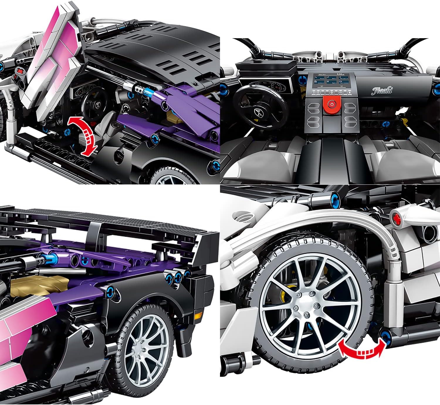 NEWRICE Super Sports Car Building Kit,1:14 Scale Model Building Blocks Toys,for 14+ Year Boys,Adult(1337Pieces)