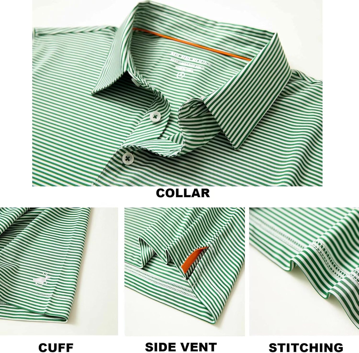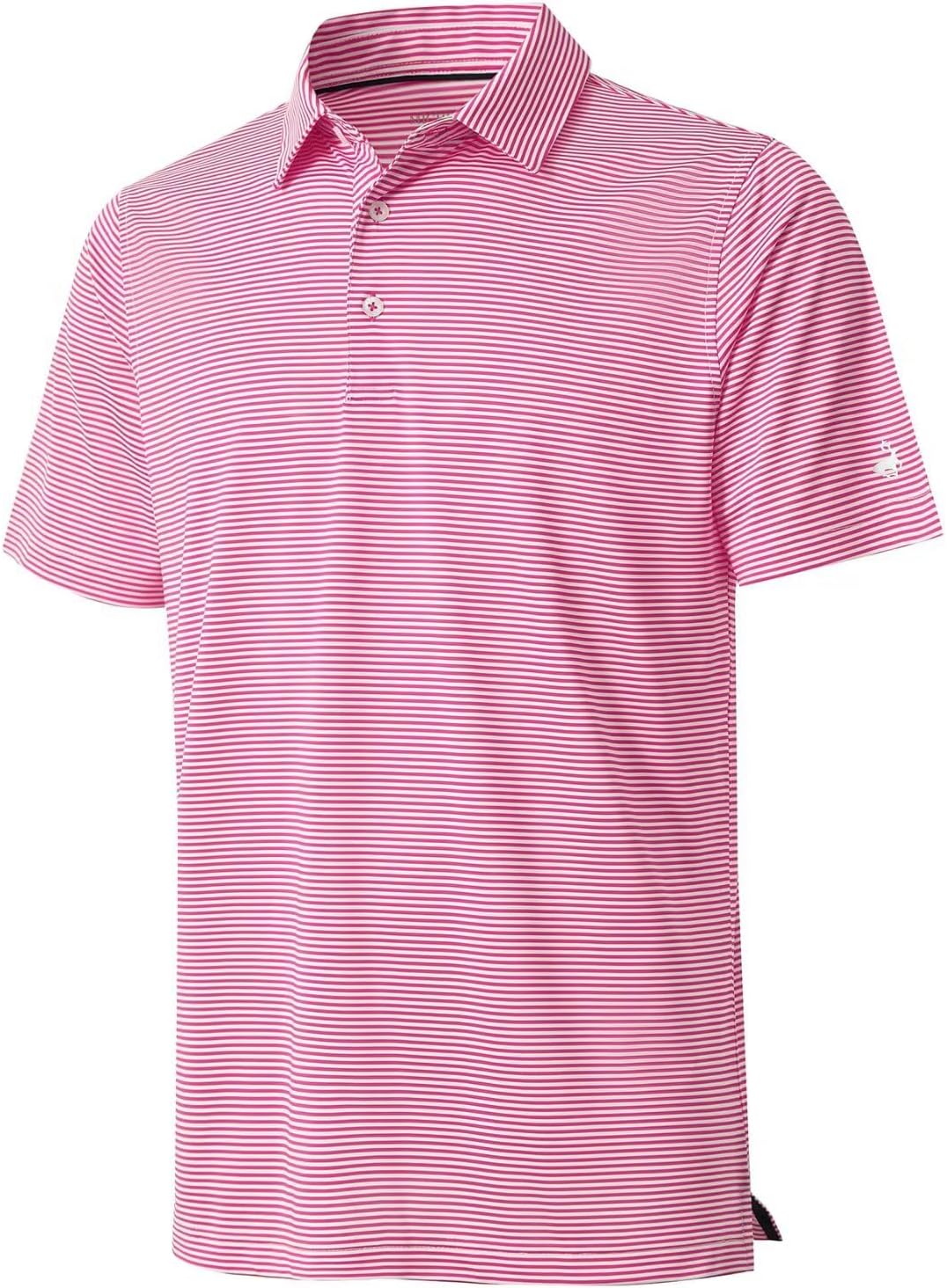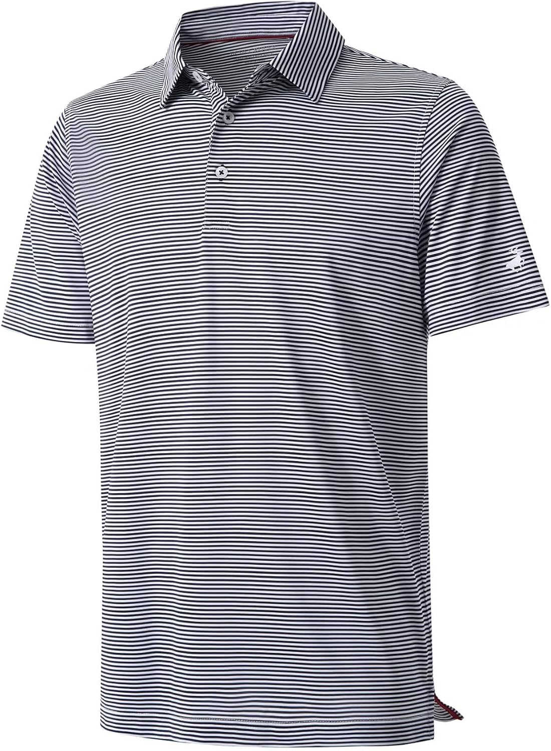 PERFORMANCE MATERIAL: Our golf shirts for men, made from polyester spandex striped two tone fabric, lightweight, quick dry, moisture wicking, UPF 30+, soft, 4-way stretch and breathable to wear in whole day.