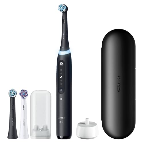 Oral-B Rechargeable Electric Toothbrush, iO5 Limited Deep Clean & Whiten, 5 Cleaning Modes, Visual Pressure Sensor to Protect Gums, Travel Case, 3 Brush Heads, Black