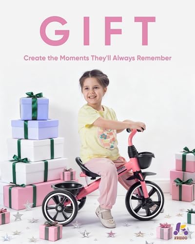KRIDDO Tricycle for 2-5 Year Olds - Pink Toddler Trike With Gift for 24 Month to 4 Year Old Girls