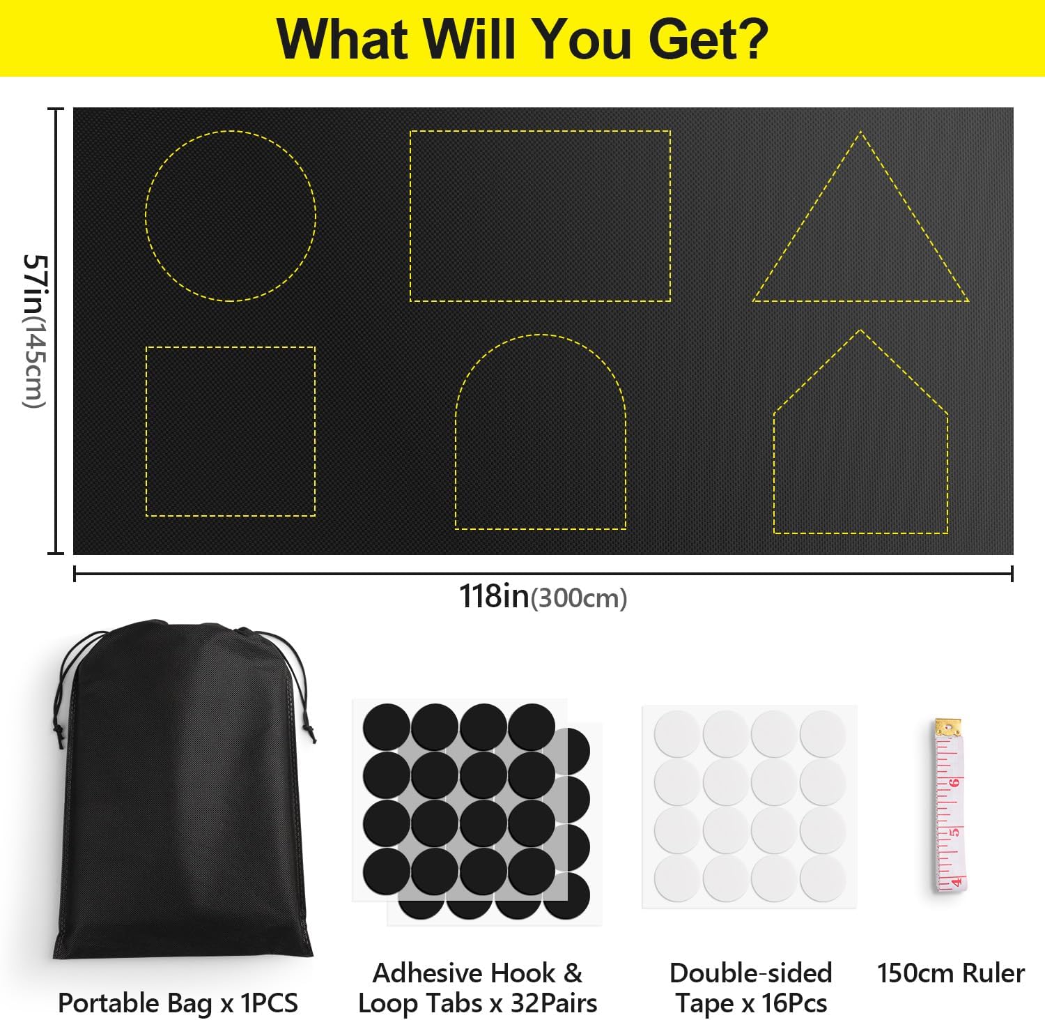 FADOTY Blackout Curtains for Bedroom, Portable 100% Black Out Window Cover Film, Cuttable Blackout Shades Fabric Sheet, No Drill Window Blinds, Sun Heat Light Blocker for Travel Media Dorm, 57'&#3