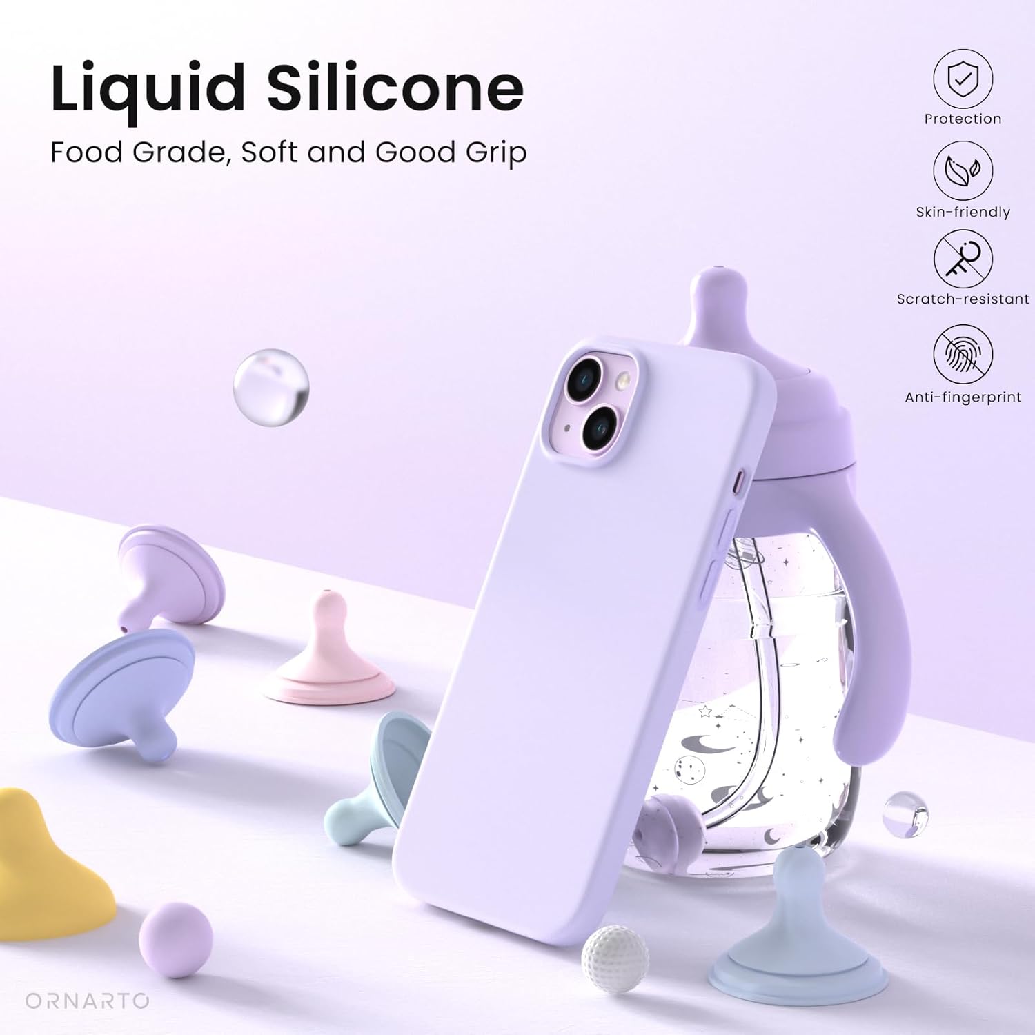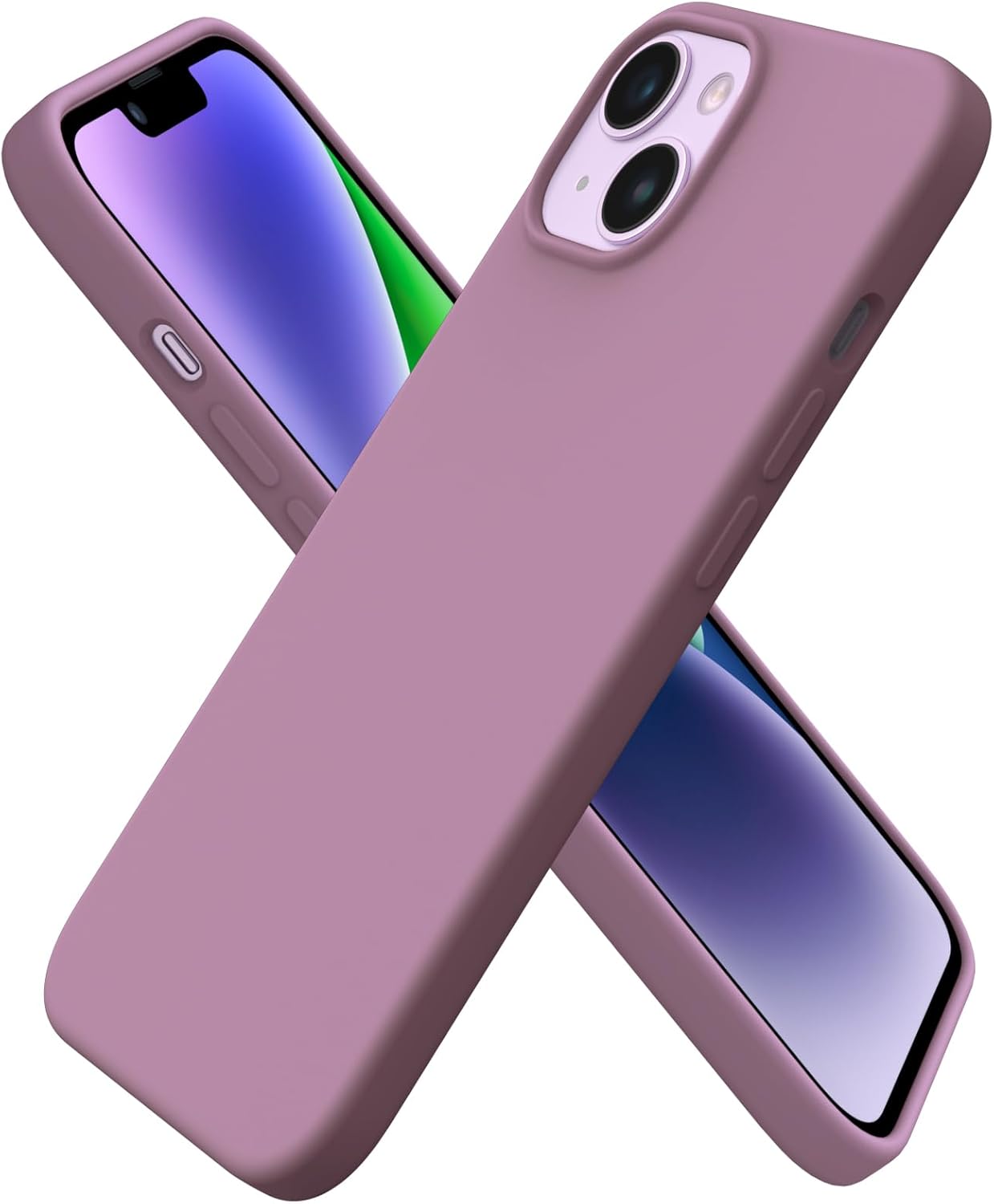 ORNARTO Compatible with iPhone 14 Case 6.1, Slim Liquid Silicone 3 Layers Full Phone Covered Soft Gel Rubber Case Protective Phone Cover 6.1 Inch-Pastel Lilac