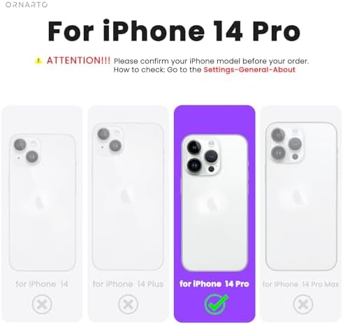 Liquid Silicone Case for iPhone 14 Pro: Only for iPhone 14 Pro (6.1 inches, 2022) — please check your model. To confirm, go to Settings > General > About and look under "Model Name." Crafted from premium liquid silicone, it provides excellent anti-dust protection with dual-layer strength and a soft microfiber lining for corner safety. SGS drop-tested and RoHS/GRS certified. Note: Not compatible with MagSafe, supports wireless charging. Raised Bevel Camera Design: Our special raised bevel camera design for iPhone 14 Pro case offers extra protection for the lens without interfering with the wide-angle camera and flashlight usage. Elegant and Stylish: The premium silicone case for iPhone 14 Pro stands out and bestows confidence and aesthetic taste to its master. It always keeps dry and clean as it is very easy to wipe off dust and dirt on the protective 14 Pro phone case. Easy to Clean: Any stains on our 14 Pro phone case can be easily wiped off with a damp cloth, which can always keep your phone case for iPhone 14 Pro in clean and excellent condition. Multi-Color Optional: ORNARTO provides you with multiple fashionable colors, match for iPhone 14 Pro with any color, expressing romantic life with fresh macaron colors. Enjoy the peace of mind provided by our 365-day coverage. If you encounter any issues, don't hesitate to reach out to us.