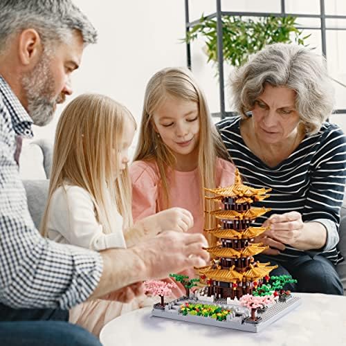 JXRLMB Chinese Ancient Famous Architecture Micro Building Blocks Set for Adults Yellow Crane Tower with Sakura Tree Cherry Plants, Toys for Kids Age of 14+ 2200 pcs