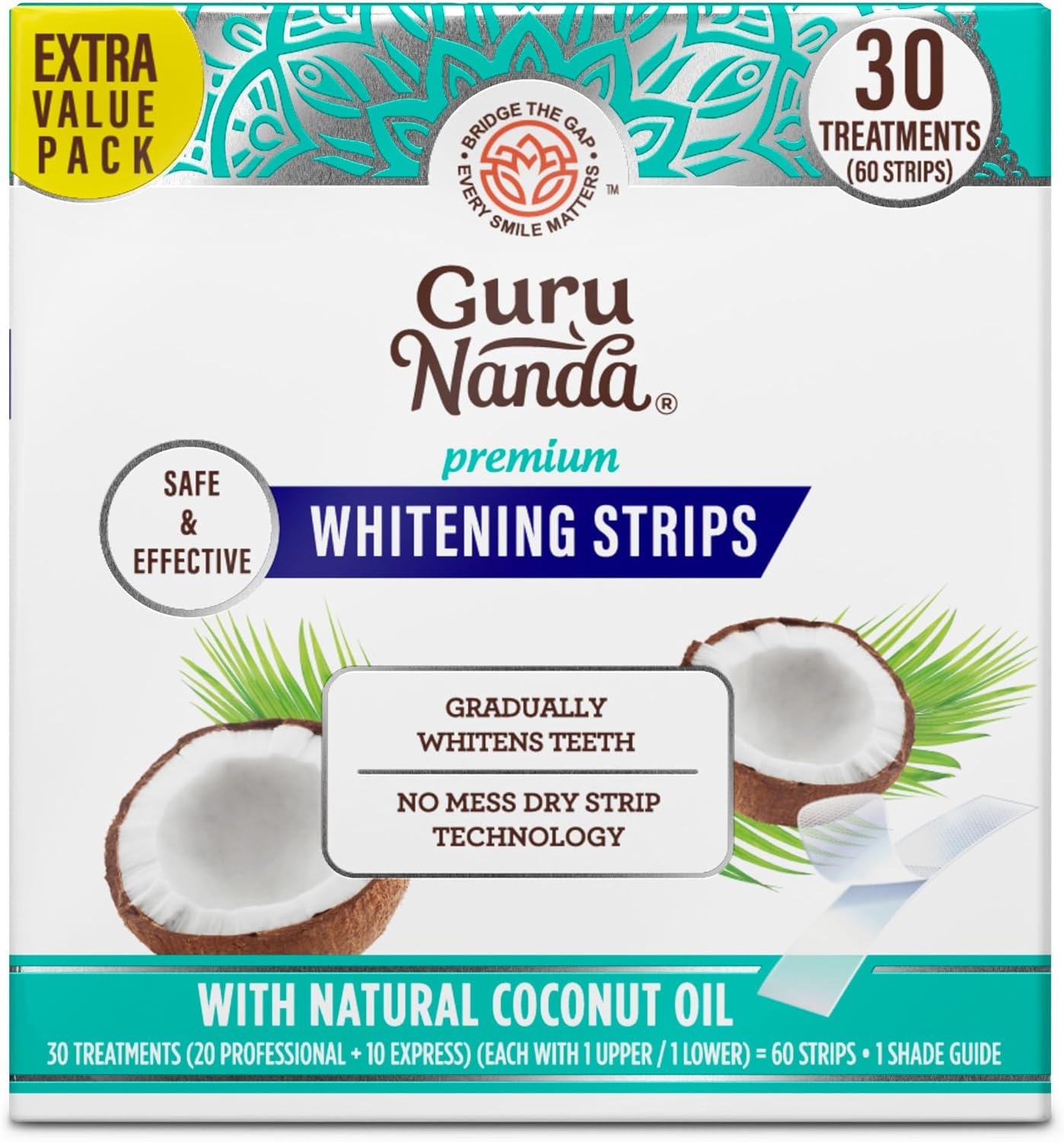 GuruNanda Teeth Whitening Strips - 7-Day Treatment with Non-Slip, Dry Strip Technology - Whitening Designed with Care for a Brighter Smile