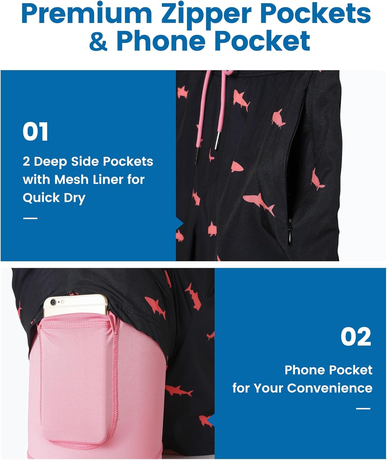 maamgic 2 in 1 Mens Swim Trunks 7 Inch Swim Shorts Swim Suits Board Shorts