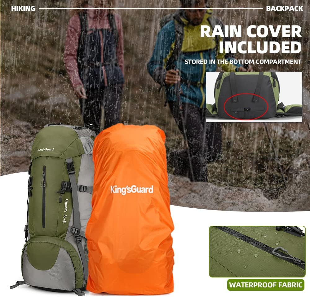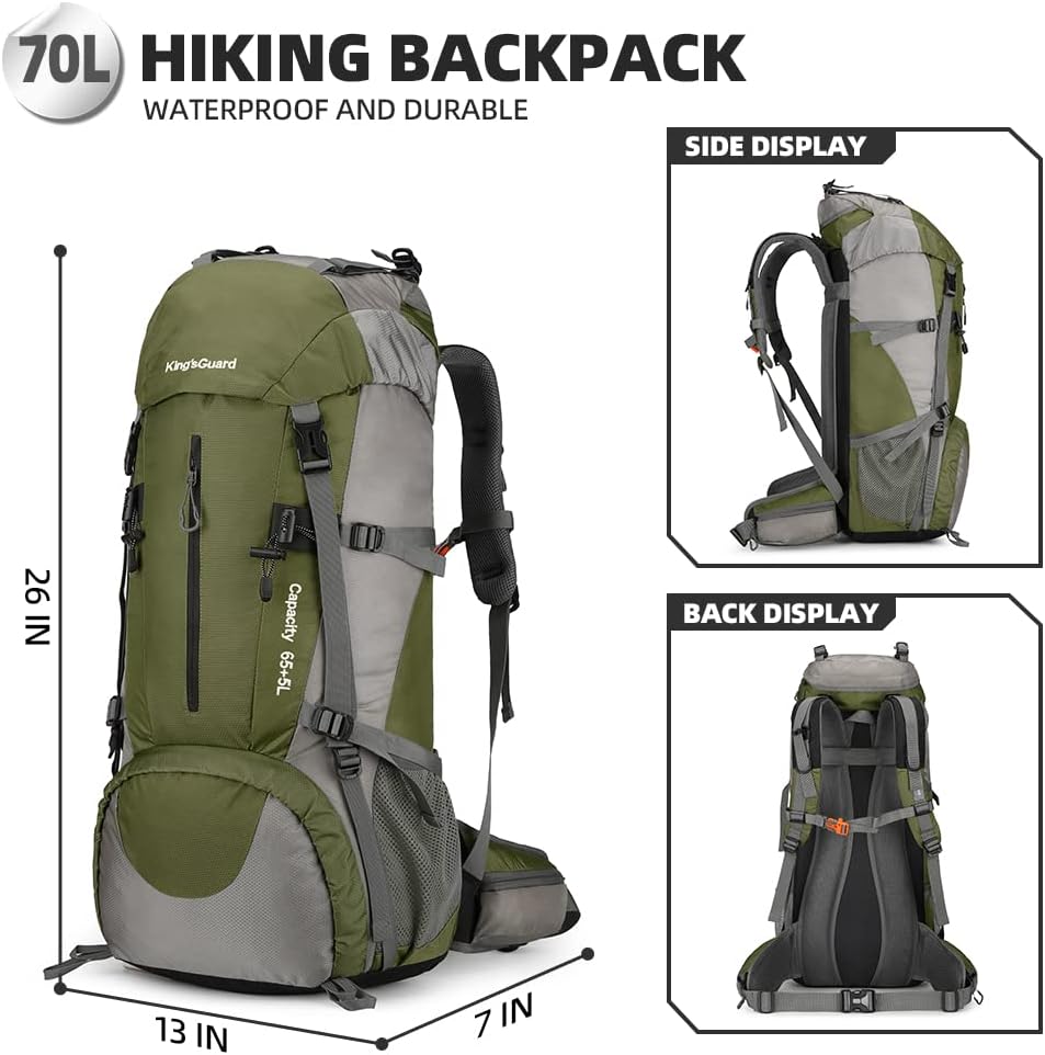 【After-sales Guarantee】The kings guard 70l hiking camping backpack with rain cover is of high quality, sturdy and thick. The kings guard 70l hiking backpack is an ideal choice for day trips, weekend getaways, and even longer journeys.【 ONE YEAR QUALITY SUPPORT 】