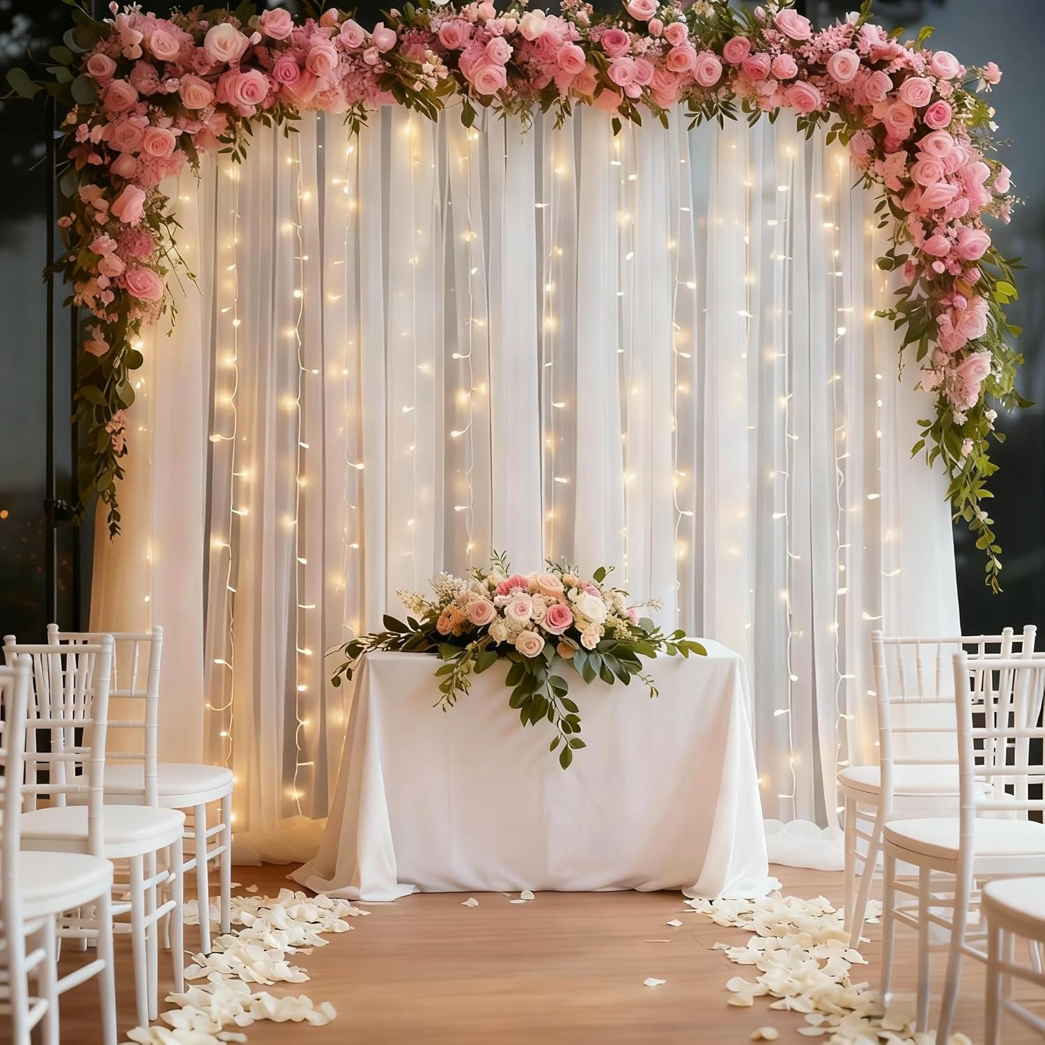 10×10ft White Tulle Backdrop Curtain with Lights String for Parites, Sheer Curtain Backdrop Drapes for Wedding Party Home Decorations