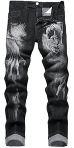 COOSVEN Mens Printed Jeans - Premium Jeans for Men Slim Fit - Skinny Stretch Denim Printed Pants for Men