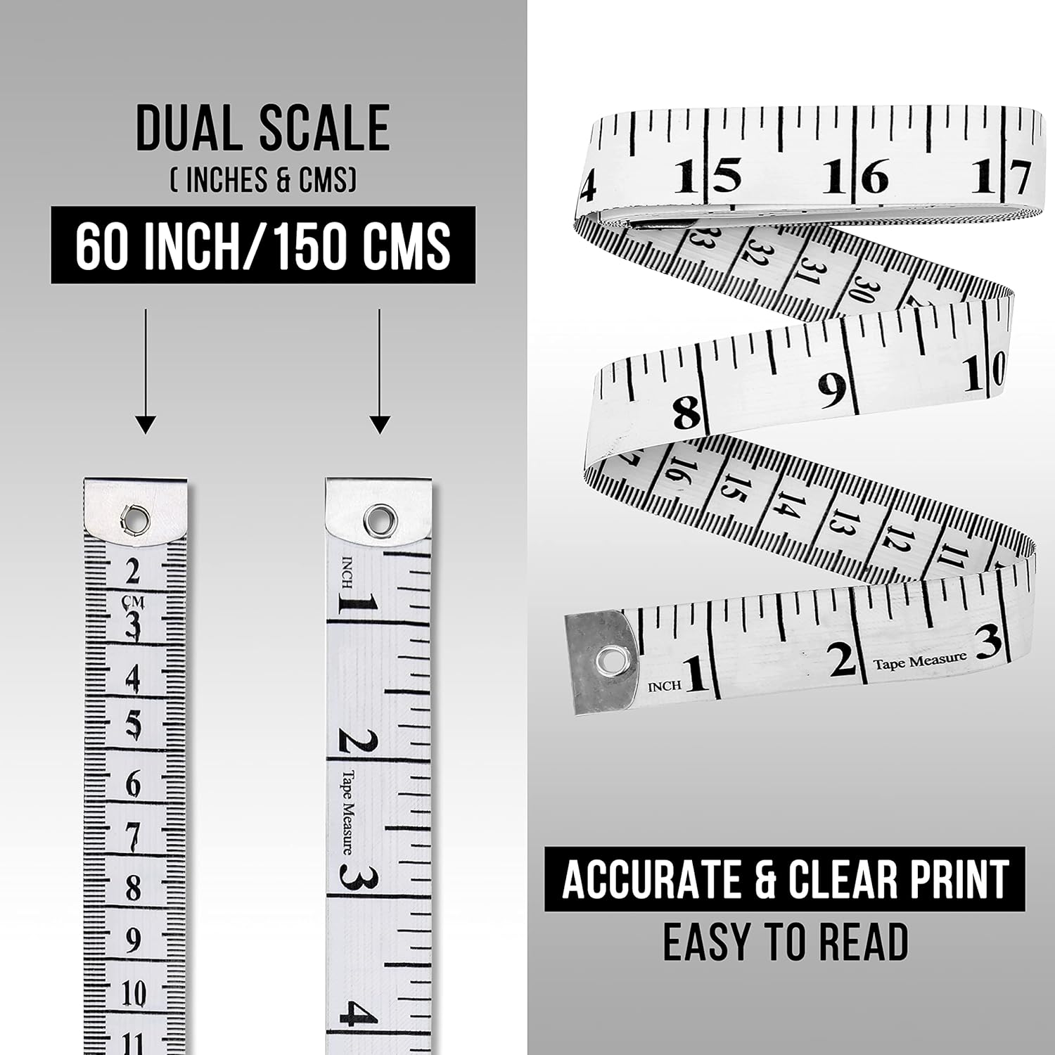 Pack of 2 Fabric Tape Measure White, Measuring Tape for Body |Soft Measuring Tape for Sewing Cloth & Weight Loss Medical Body Measurement Nursing Craft 60 inch,150 cm
