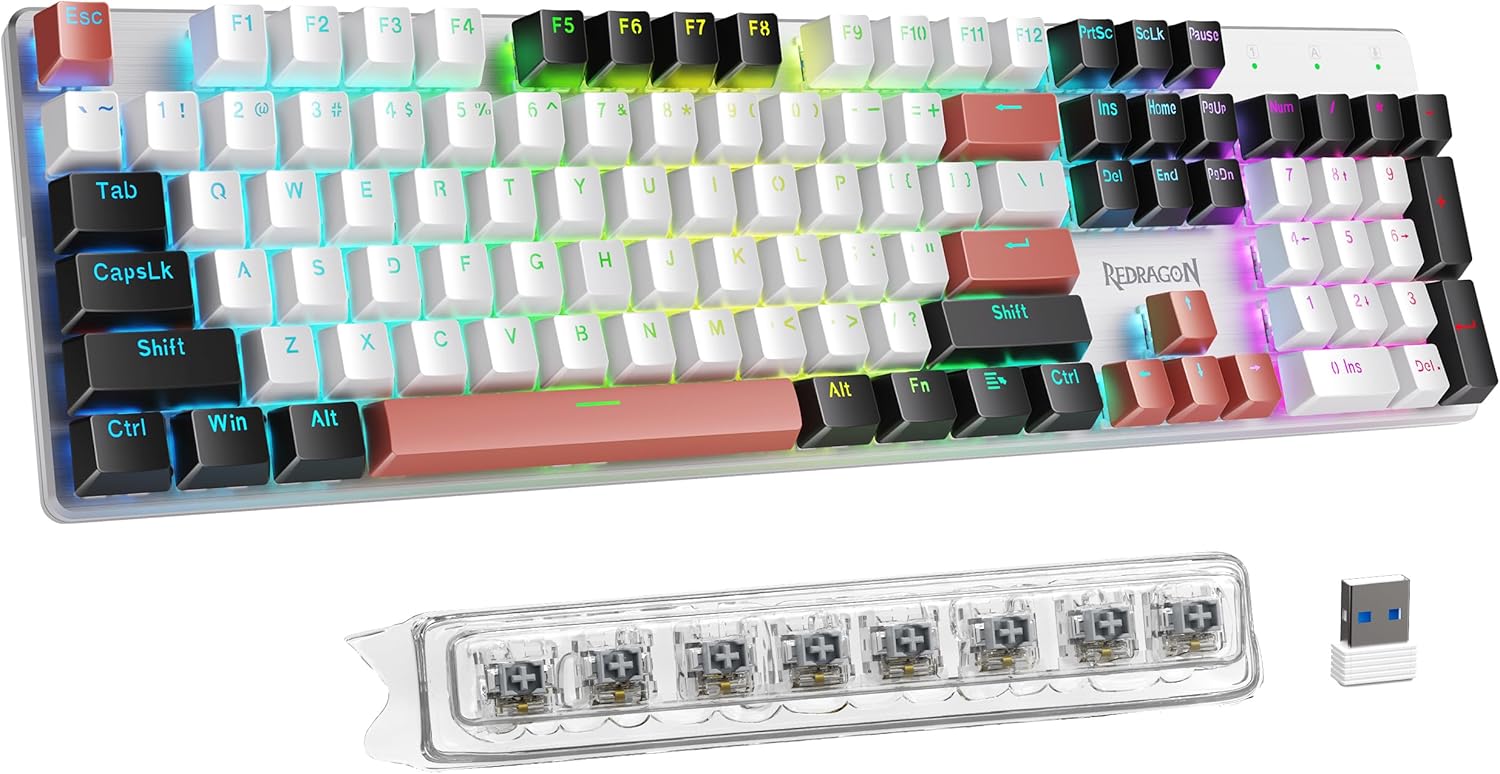 Redragon Mechanical Gaming Keyboard Wired, 11 Programmable Backlit Modes, Hot-Swappable Red Switch, Anti-Ghosting, Double-Shot PBT Keycaps, Light Up Keyboard for PC Mac