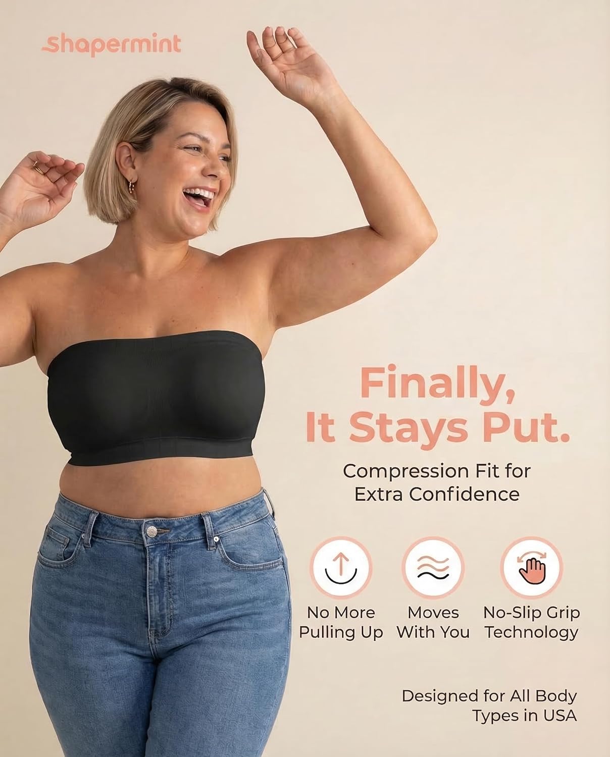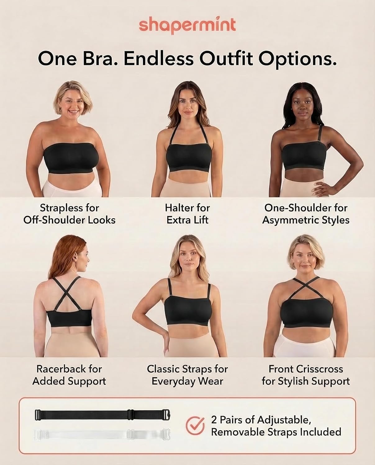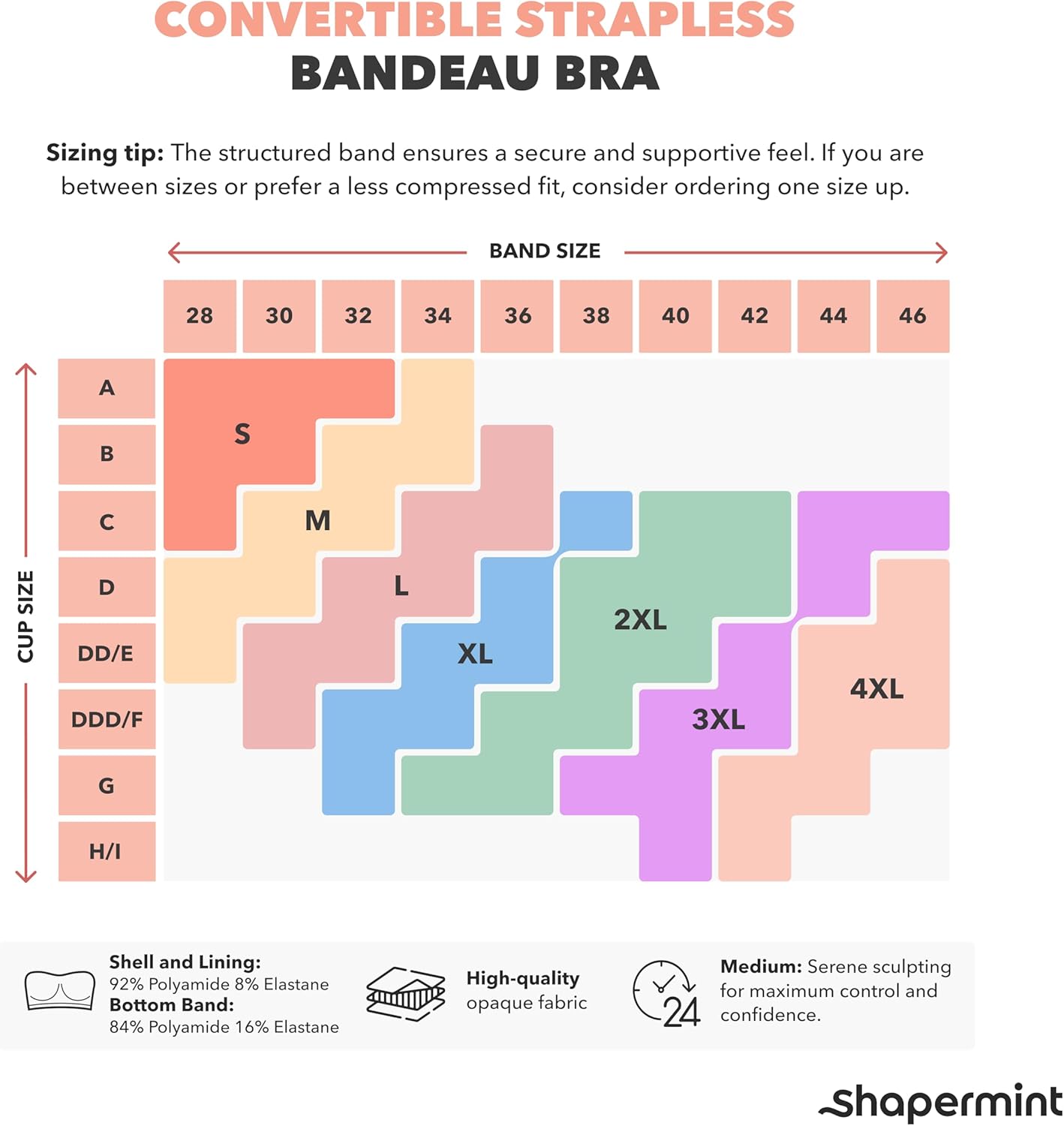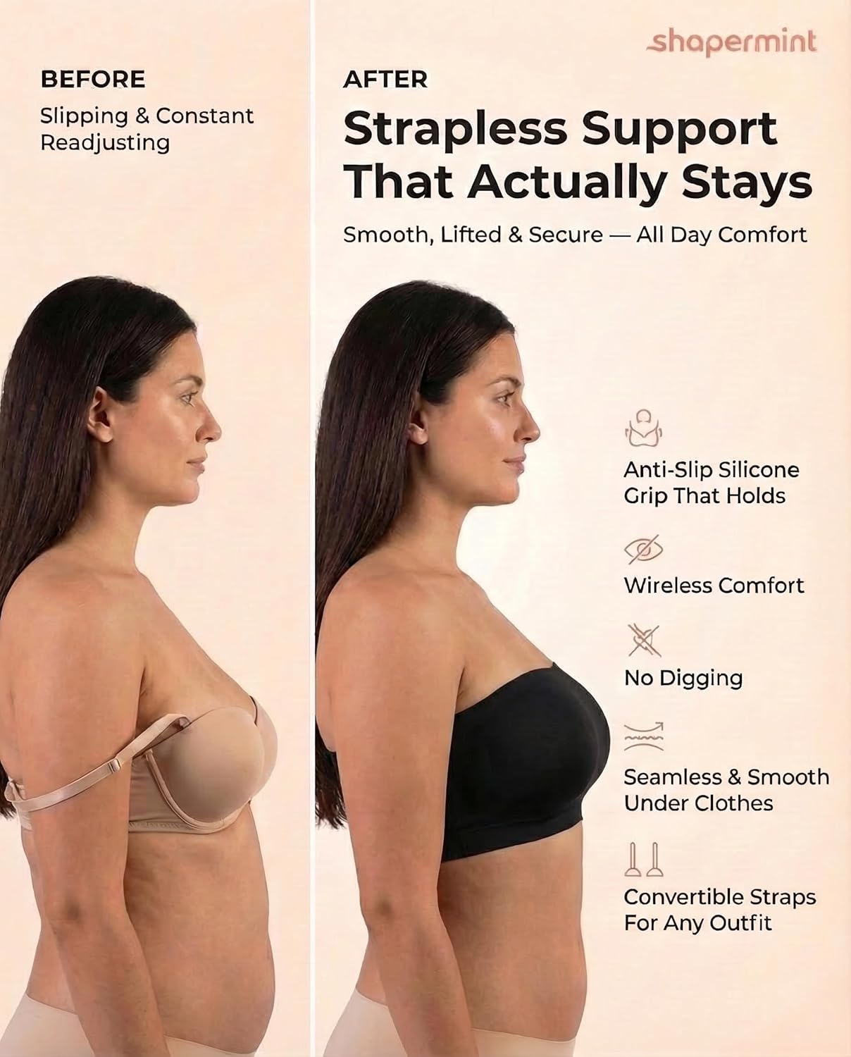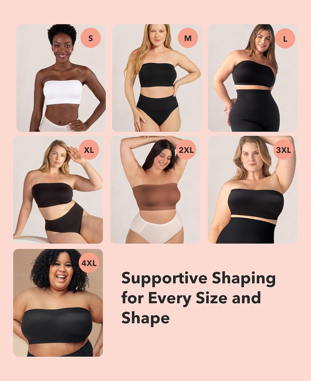 SHAPERMINT Strapless Bras for Women - Bandeau Bra, Small to Plus Size Bras for Women, Strapless Top