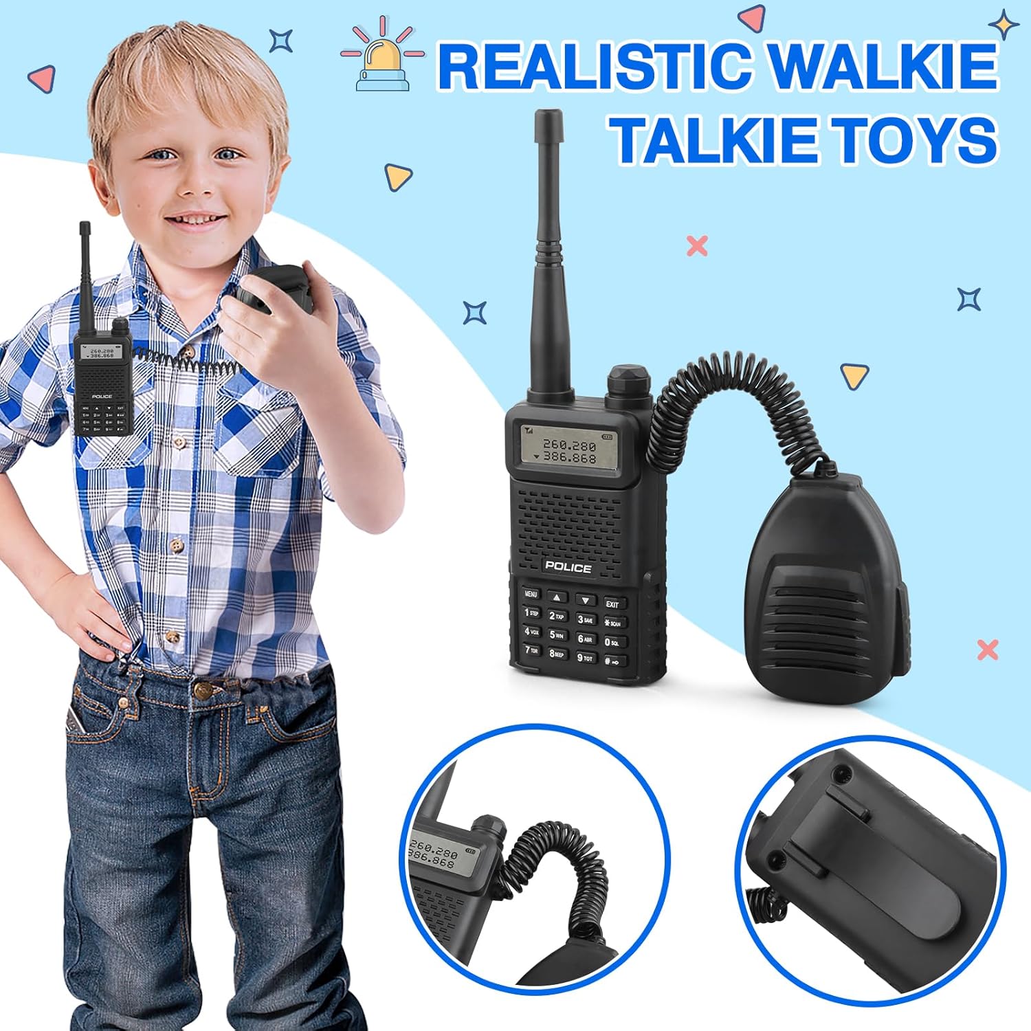 IVENRXIU Police Toys, Police Pretend Play Toys for Kids Boys and Girls, Role Play Set with Police Accessories, Handcuffs, Warning Light, Police Badge, Birthday Halloween Christmas Gifts