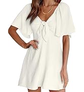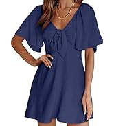This dress features a cross v neckline,stretchy elastic high waist,smocked back,flared short sleeves,belt,tiered dress, mini dress, flowy and swing a-line style. The smocked design ensures a flattering fit that hugs your curves in all the right places, making it suitable for all body shapes Mini Dress For Women 2025/Short Flared Sleeve Dresses/Ruffled Hem A-Line Dress/High Waist Flowy Dress/Wrap V Neck Solid Dress/Tiered Flowy Dress For Women/Swing Dress With Belt/Summer Dress For Women/Fit And Flare Dress For Women/Lightweight Chiffon Dress/Beach Dress For Women Dokotoo Women's Wrap V Neck Short Flared Sleeve Smocked Elastic Waist Tiered Belted Ruffle Hem Party Short Dress This dress is an essential piece for hot summer days which is suitable for casual, daily, vacations, beach, wedding, date night, graduation, homecoming, church, banquet, baby shower, postpartum or pregnancy wear, office, family gathering, photo shoot, and other special events. Simply style the dress with necklaces, earrings, hats, sandals, heels or boots, and a matching clutch, along with a red lipstick for a pop of color, you will look effortlessly put-together and stylish